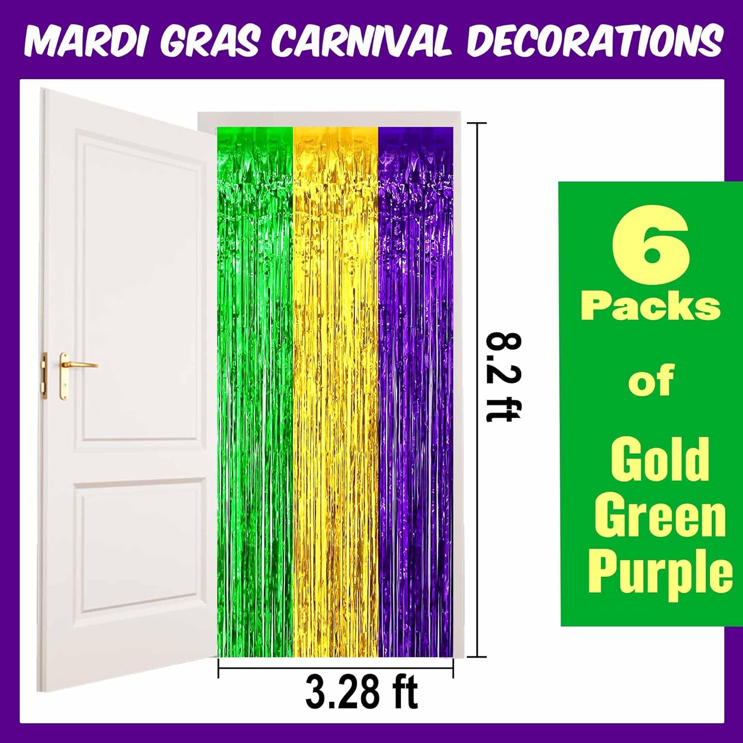 6 Pack Gold Green Purple Foil Fringe Curtains Backdrop, 3.28 x 8.2 Ft Metallic Streamers Tinsel Curtains Background for Photo Booth, Birthday, Weddings, Carnivals, Graduation, Themed Party Decorations