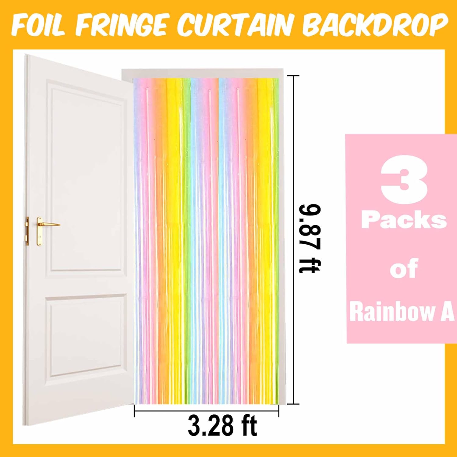 - Package and size: 3 Packs Foil Fringe Streamers Curtain Backdrop. The size is 3.28 x 9.8 feet. It's long, enough to fit any party occasion. Made of metallic foil material, shiny and creating dazzling effects, adding luxury and visual impact to the party