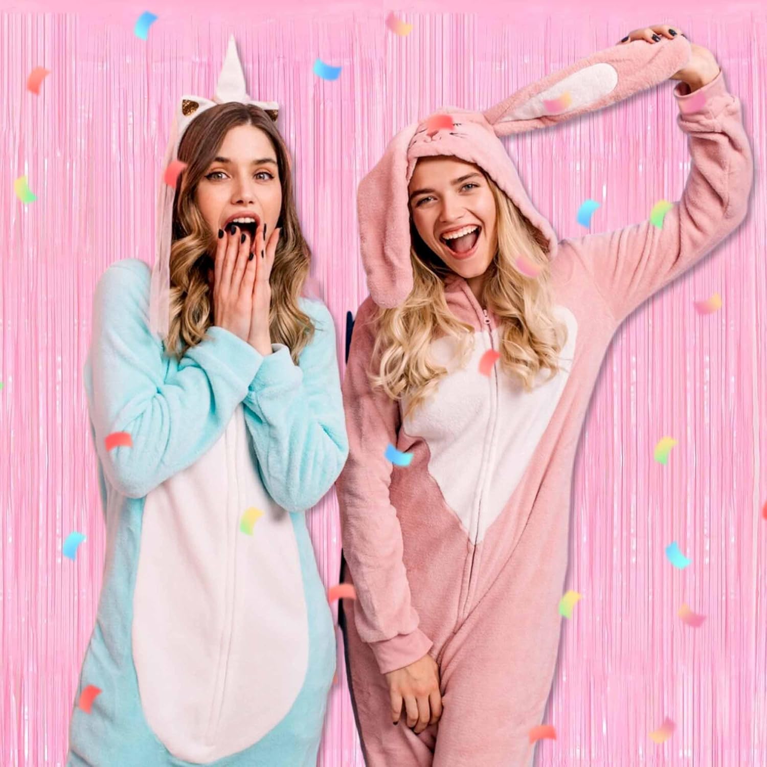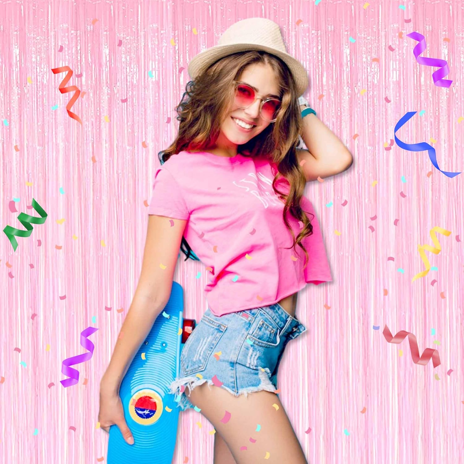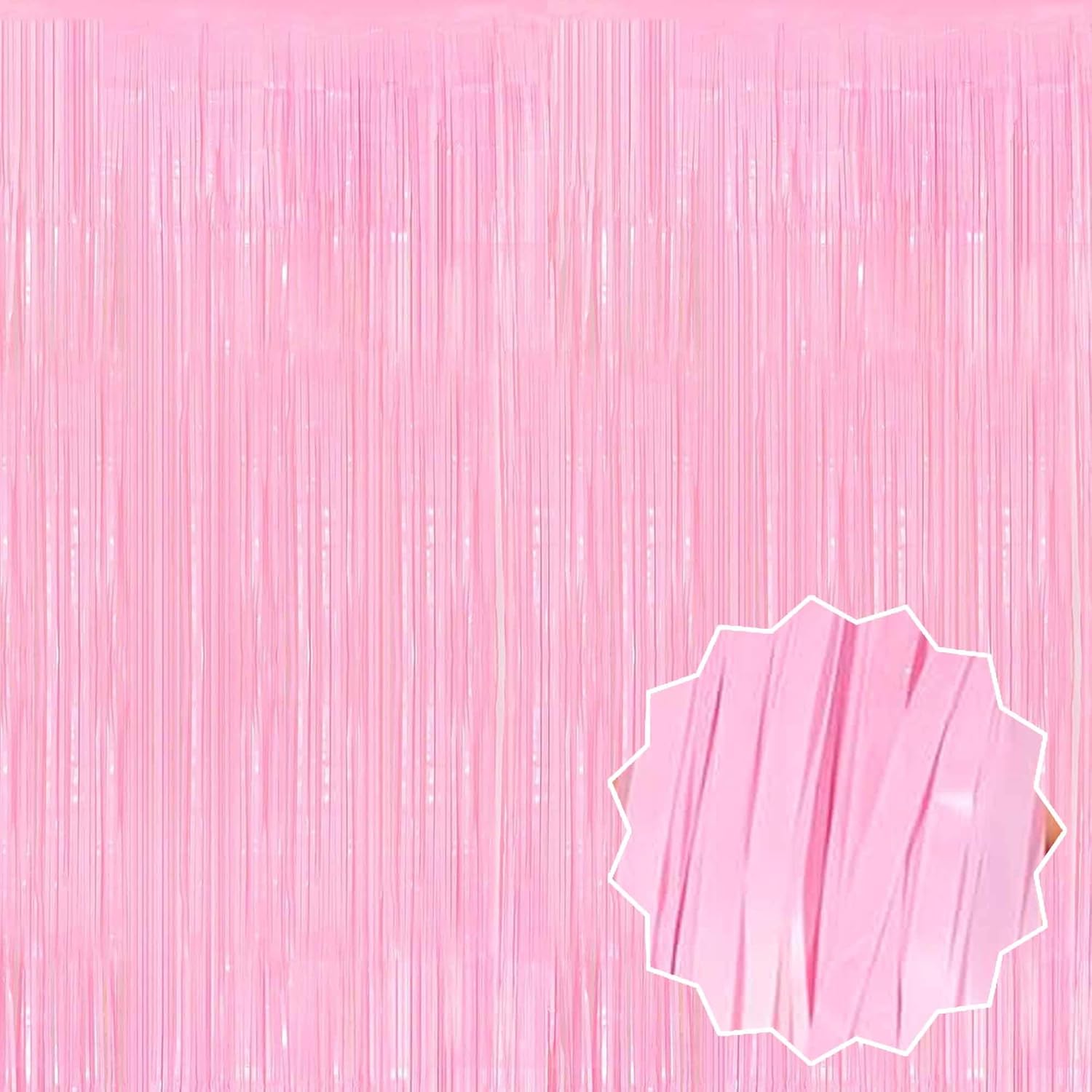 3 Pack Macaron Pink Foil Fringe Curtains Backdrop, 3.28 x 9.8 Ft Metallic Streamers Tinsel Curtains Background for Photo Booth, Birthday, Halloween, Christmas, New Year Party Decorations