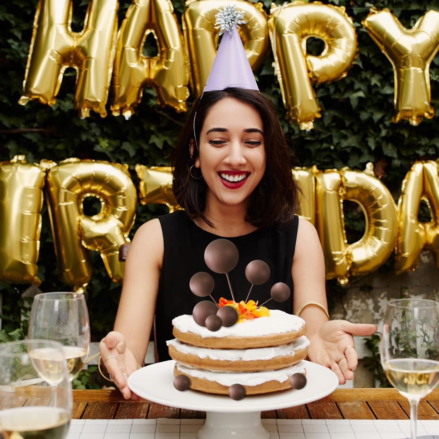 ASTARON 20 Pcs Ball Cake Topper Decorations Mini Balloons Cake Topper Sticks Brown Balls Cake Picks Cake Topper Balls Cake Decorations for Wedding Birthday Cake Decorations