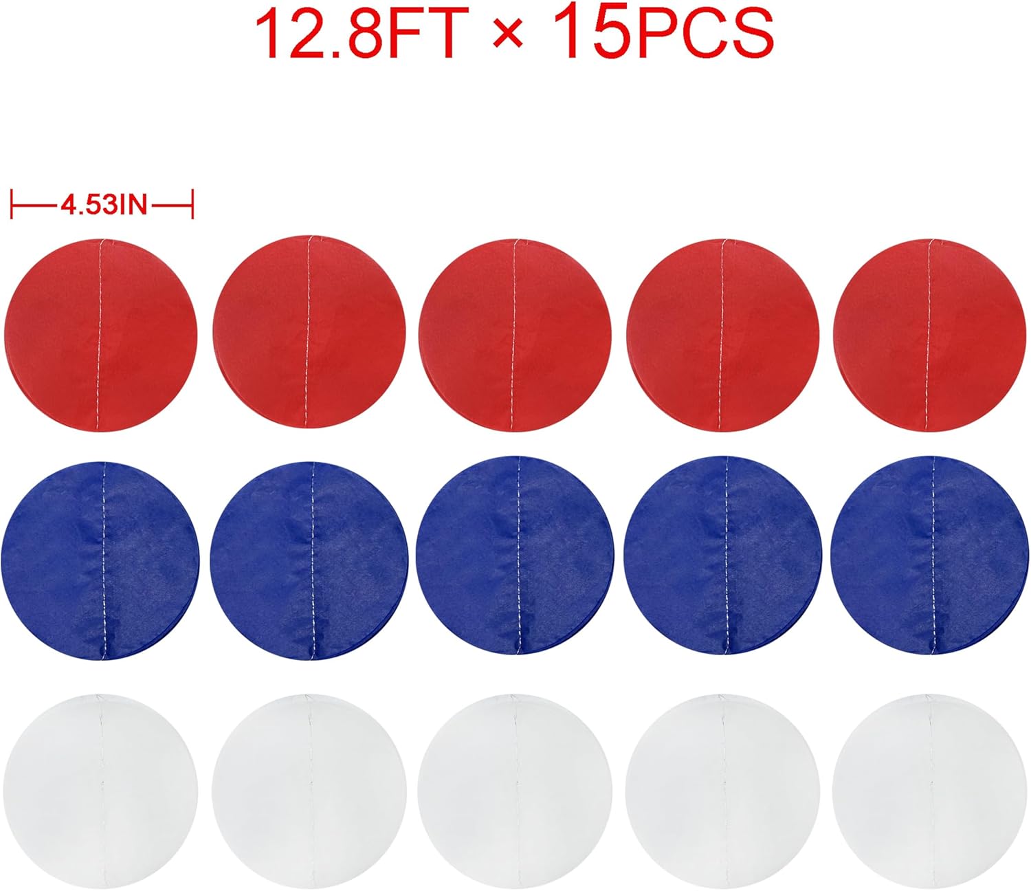- 🔵PACKAGE CONTAINS- 15 packs of royal blue red and white circle dot party garland streamer,each string is 12.8 feet/3.9 meters with 30 pcs polka dots, Total is 58.5meters/192 feet.