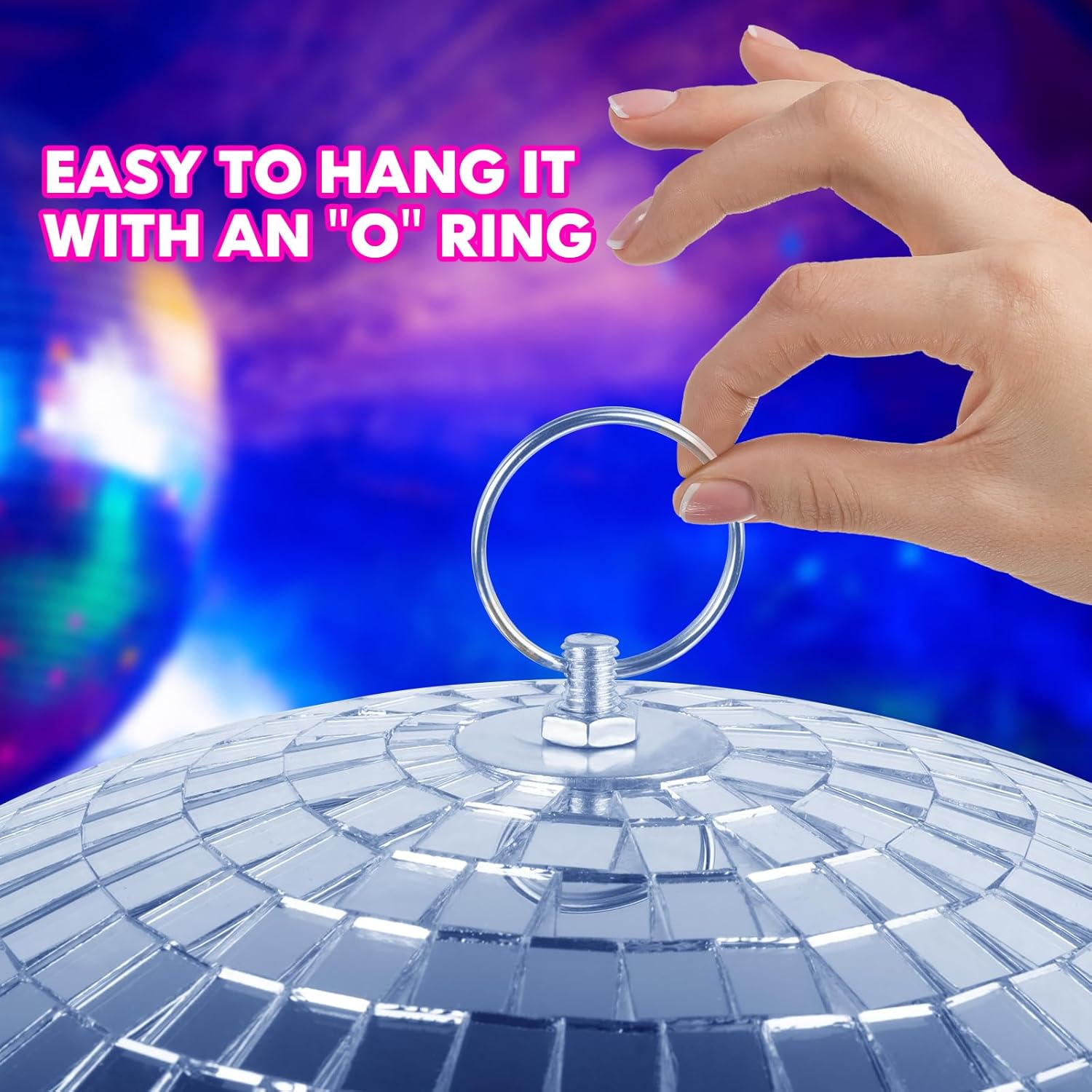 - Easy Installation: Designed with the "O" ring, it's easy to hang—perfect for both indoor and outdoor use. Simply suspend it from a sturdy hook or beam, and watch as it rotates and reflects light, creating a dynamic visual experience that will keep your friends entertained all night long.