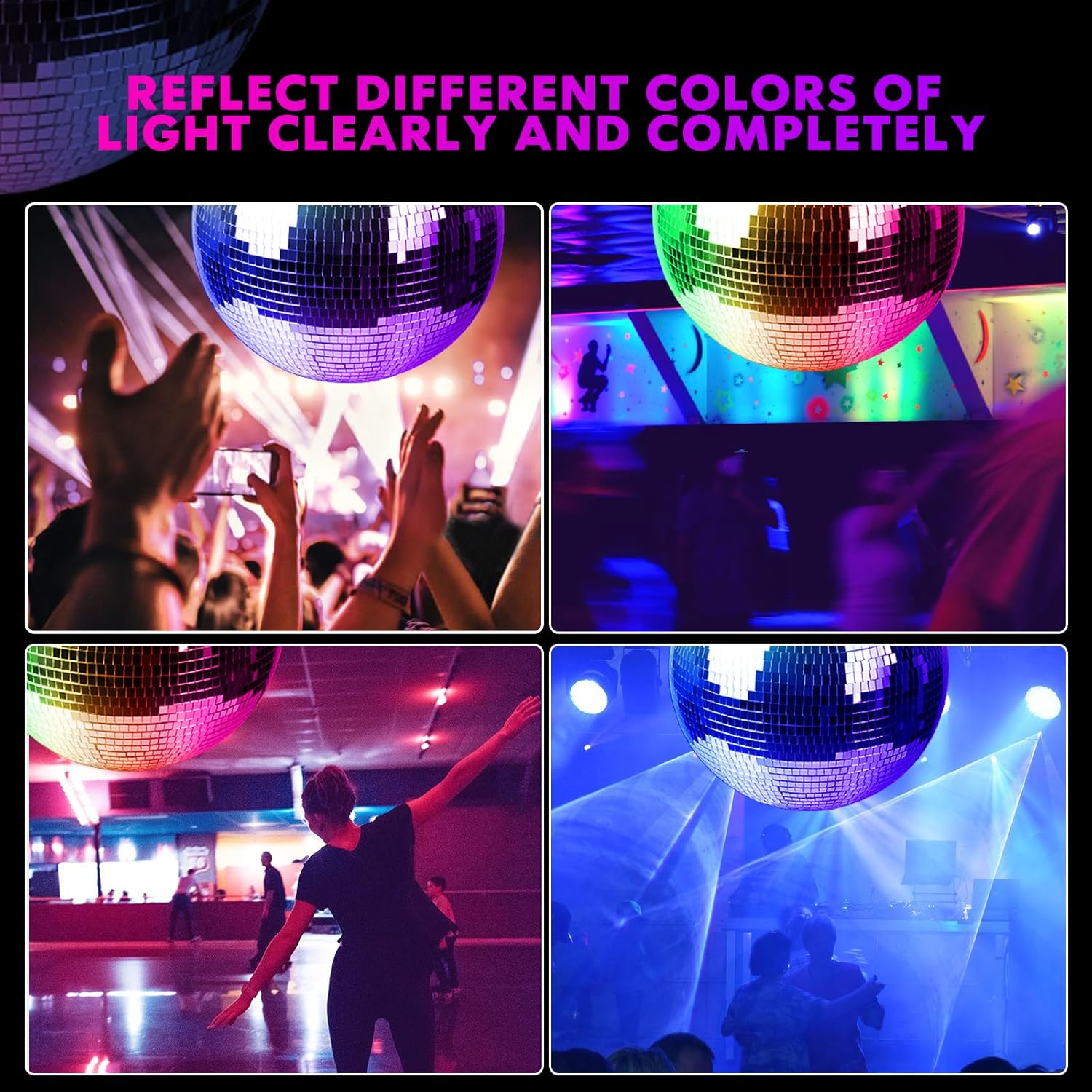 - What you receive: Not only does it includes a 16-inch large disco ball, but it also comes with 15 spare mirror panels. This ensures that you can continue to enjoy uninterrupted fun and create stunning light effects even if a mirror becomes damaged or worn out.