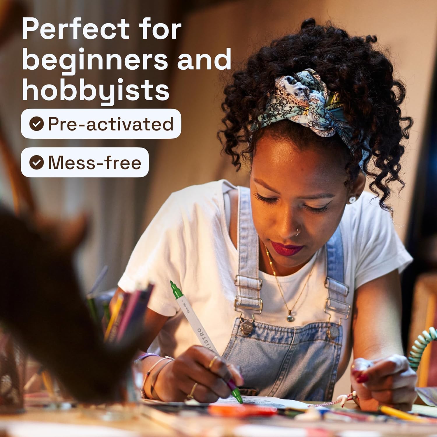 - Pre-Activated Cotton Nibs for Immediate Use – No shaking or pressing required. These acrylic paint markers come ready with pre-activated cotton nibs, allowing you to start creating instantly with quick-drying, smudge-resistant ink.