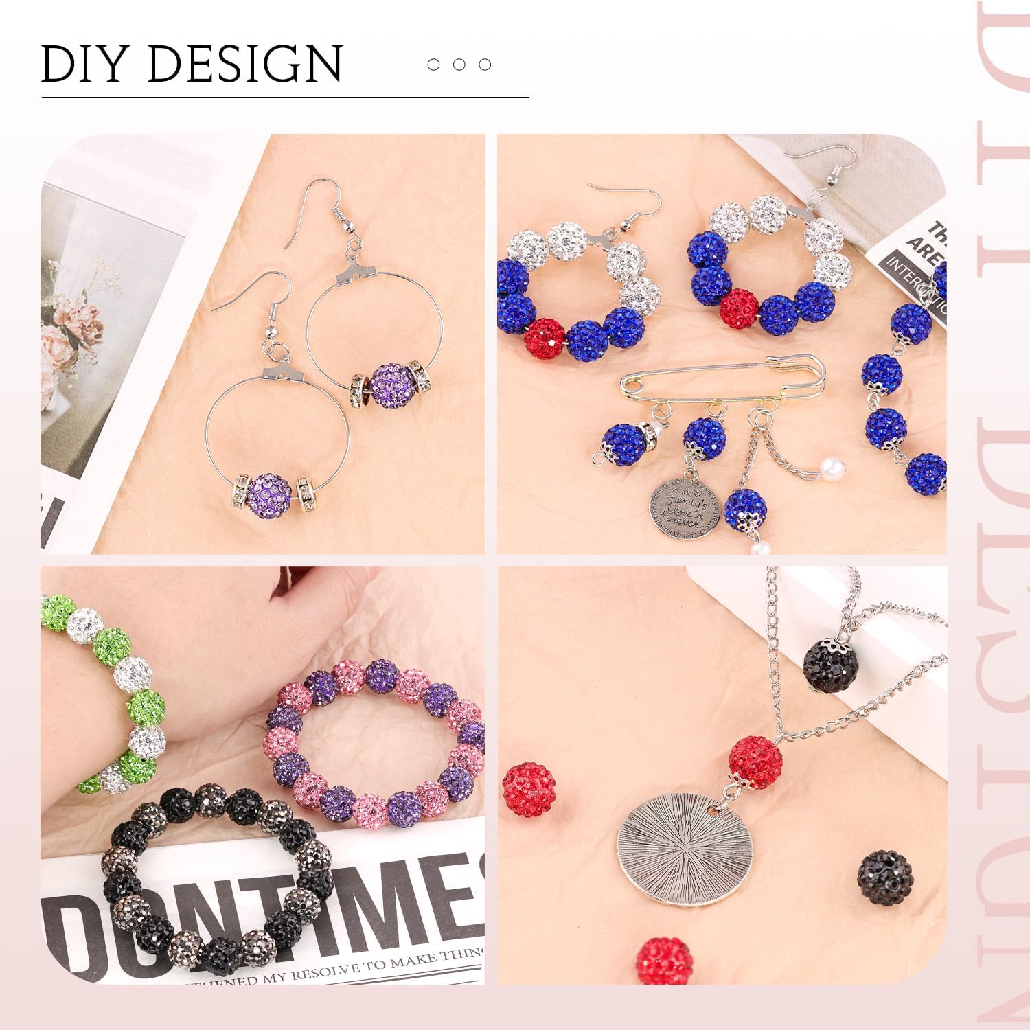 - WIDE USAGE -- Perfect for DIY Shamballa bracelets, necklaces, earrings, key-chains, pins, hair accessories and other jewelry making. Also suitable for decorating pendants, clothing accessories, ornaments and other decorations.