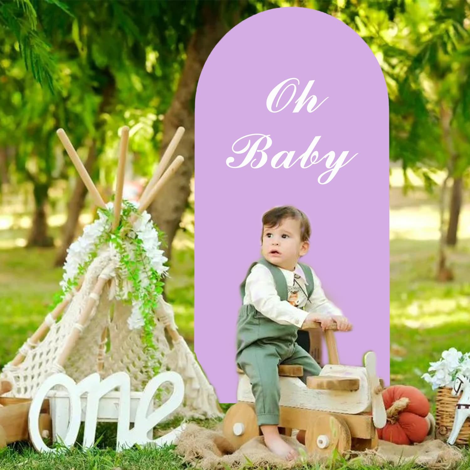 Purple Arch Cover 6ft Lavender Spandex Fitted Round Top Back Drop Covers Chiara Backdrop-Cover Wedding Arched Back Drop Panels for Bridal Shower Arch-Backdrop Banquet Garden Party Decor