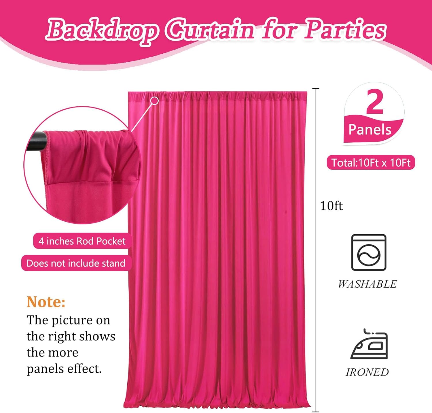 - 【Easy to Use】Both hand wash and machine wash is OK, with rod pocket across the top for easy hanging on a pipe or backdrop stand. Pay attention to keeping the photo drape backdrop curtains panels clean when hanging, otherwise it will affect the appearance.
