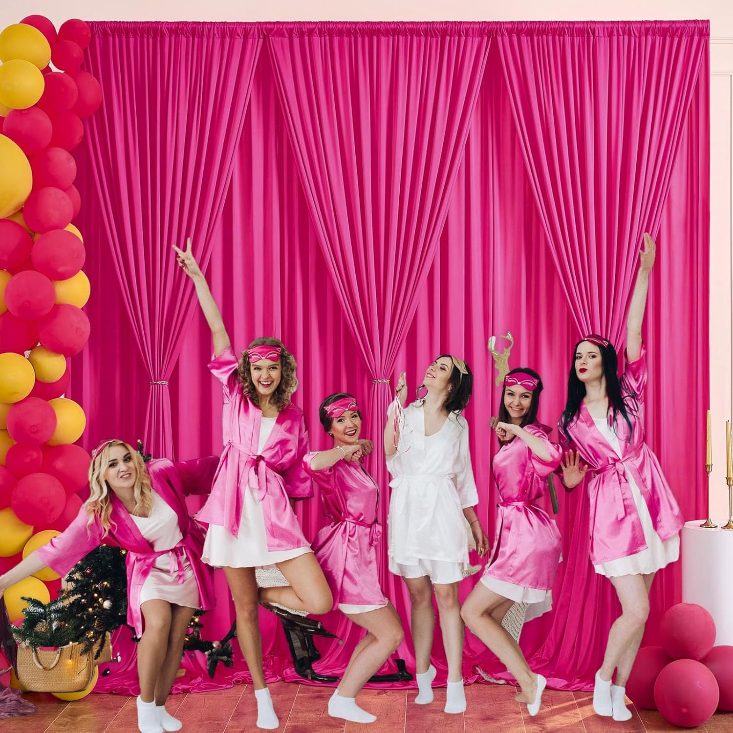 10 x 10 Feet Fuchsia Backdrop Curtain for Partie, Background Curtains for Photoshoot, Birthday, Wedding, Halloween, Thanksgiving, Christmas Day, New Year Party Decorations 5Ft x 10Ft, 2 Panels