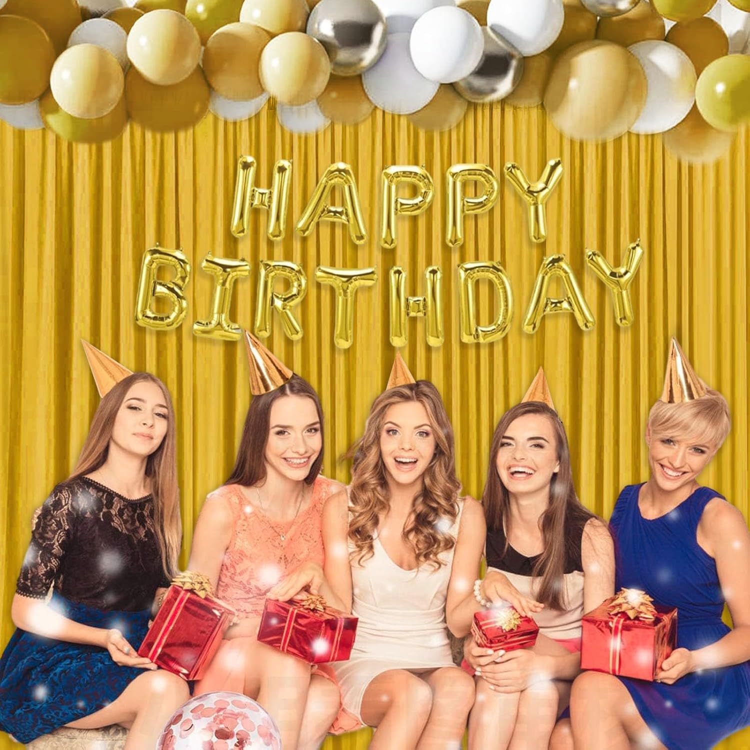 10 x 10 Feet Gold Backdrop Curtain for Partie, Background Curtains for Photoshoot, Birthday, Wedding, Halloween, Thanksgiving, Christmas Day, New Year Party Decorations 5Ft x 10Ft, 2 Panels