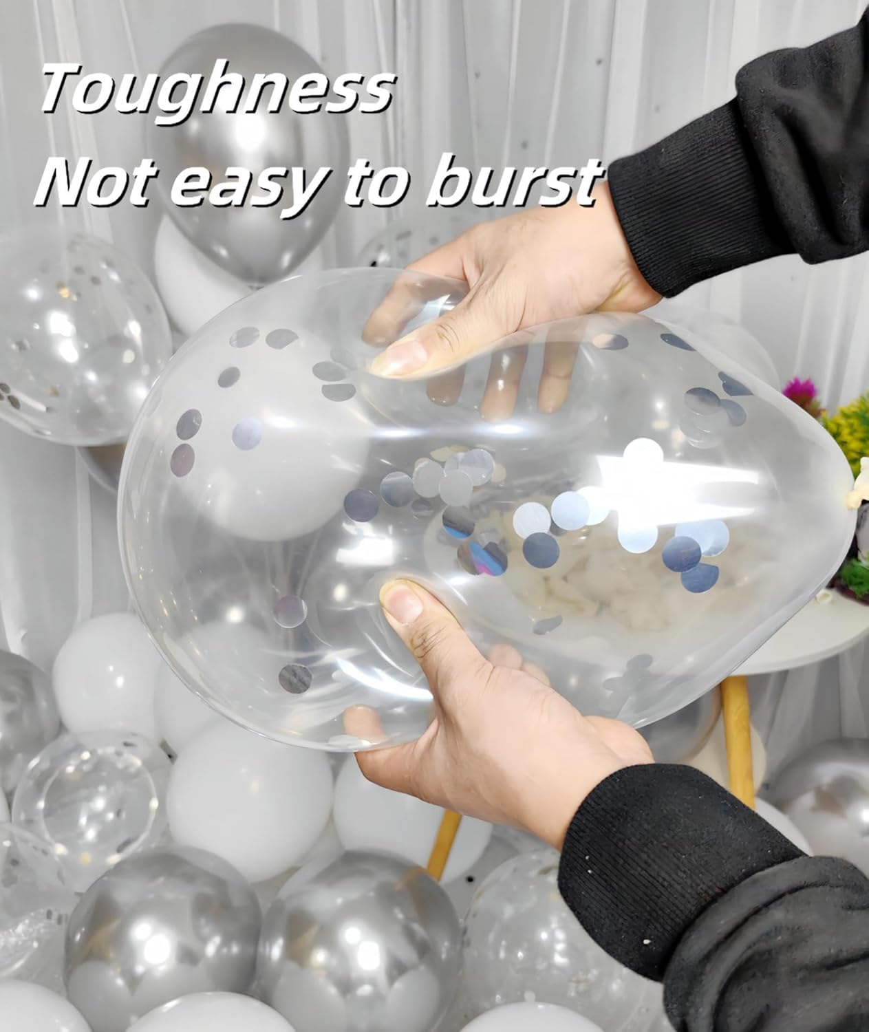- Package Includes: You will get silve sequin balloons 100 pcs + metallic silver balloons balloons 100 pcs + white balloons 100 pcs total 300 pcs