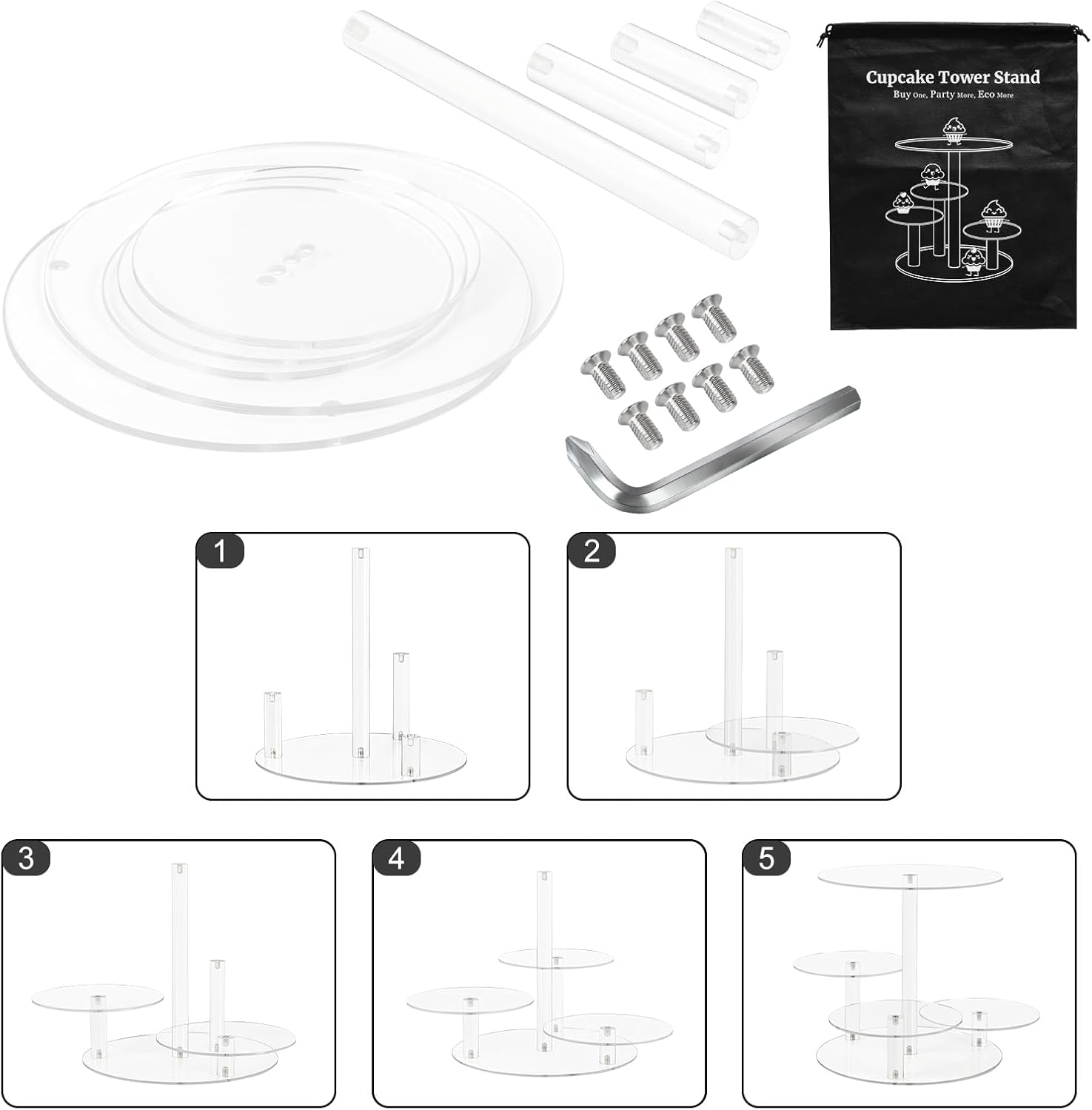 - π[Premium Cupcake Stand] This tiered cake and cupcake combo stand is made of 4mm thick premium acrylic which has a solid construction and unique design. The edges of the acrylic are perfectly clear and well polished, safe to use.