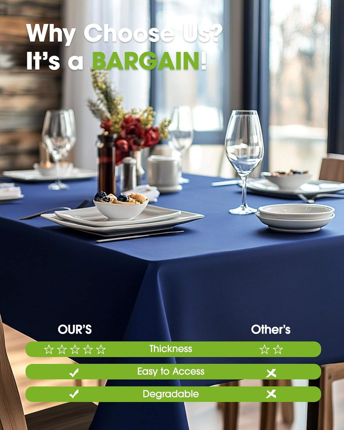 - FOR ALL OCCASIONS: With the universal size and multiple color options, our disposable table cloths are widely applicable to kinds of events, parties, church functions, work events, one-time use, and even practical everyday use.
