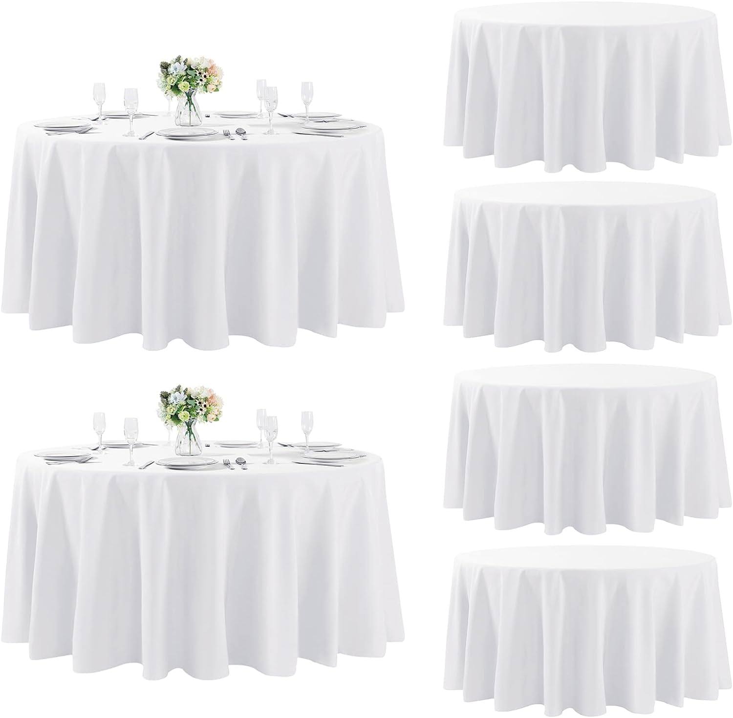 Fokitut 6 Pack Round Tablecloth, 132 Inch, Stain Resistant and Wrinkle Polyester Table Cloth, Fabric Table Cover for Kitchen Dining, Wedding, Party, Holiday Dinner-White