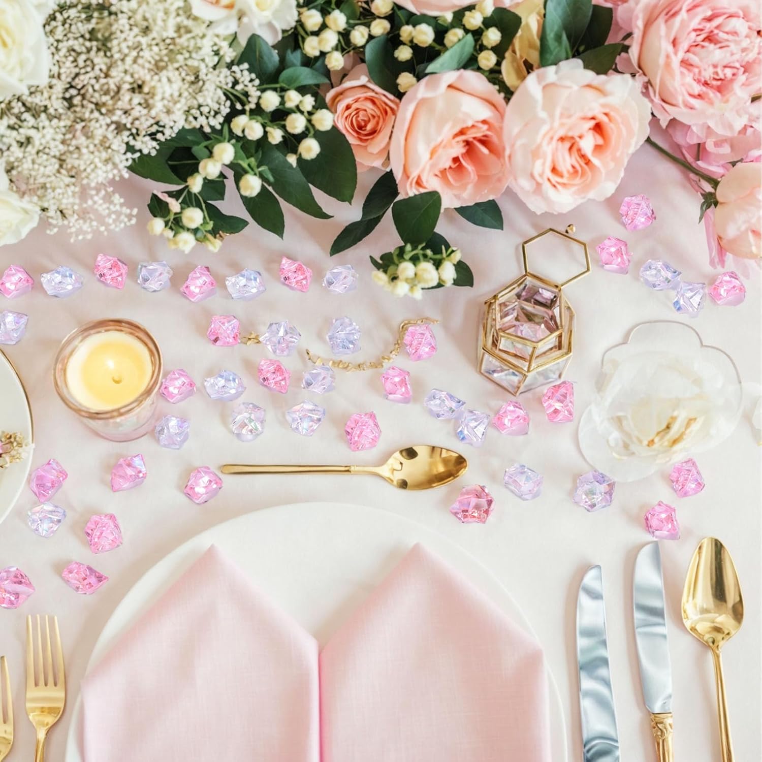DomeStar 150PCS Dazzling Fake Ice Rocks, Pink Holographic Acrylic Crushed Ice Sparkling Plastic Diamonds Gems for Vases Fillers Aquarium Rocks Party Table Scatter Wedding Decor