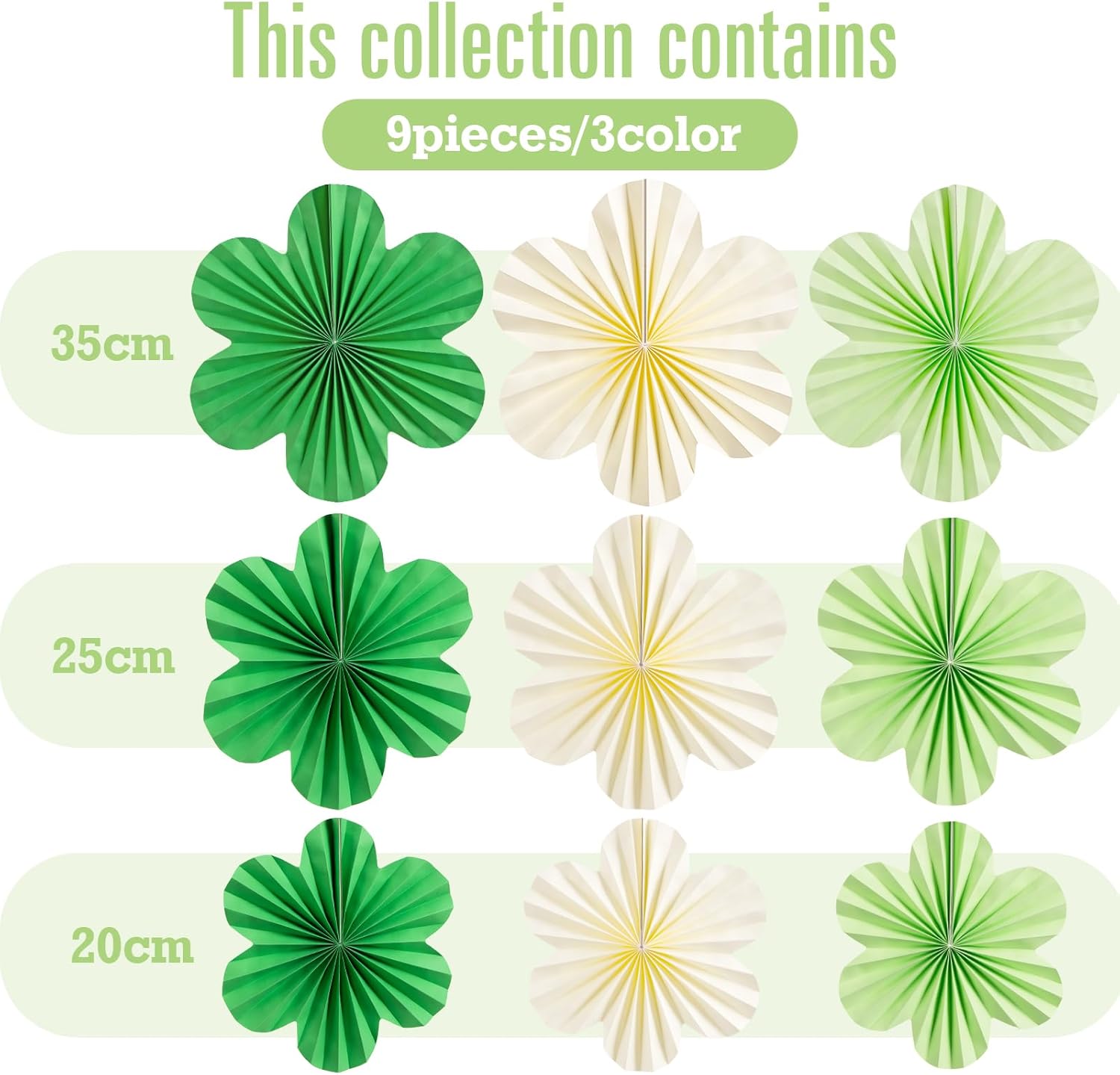 - Stunning Visual Impact: Elevate your party décor with our Green Paper Flowers Fans Decorations, featuring a set of 9 intricately crafted paper fans in varying shades of green, adding depth and elegance to any space.