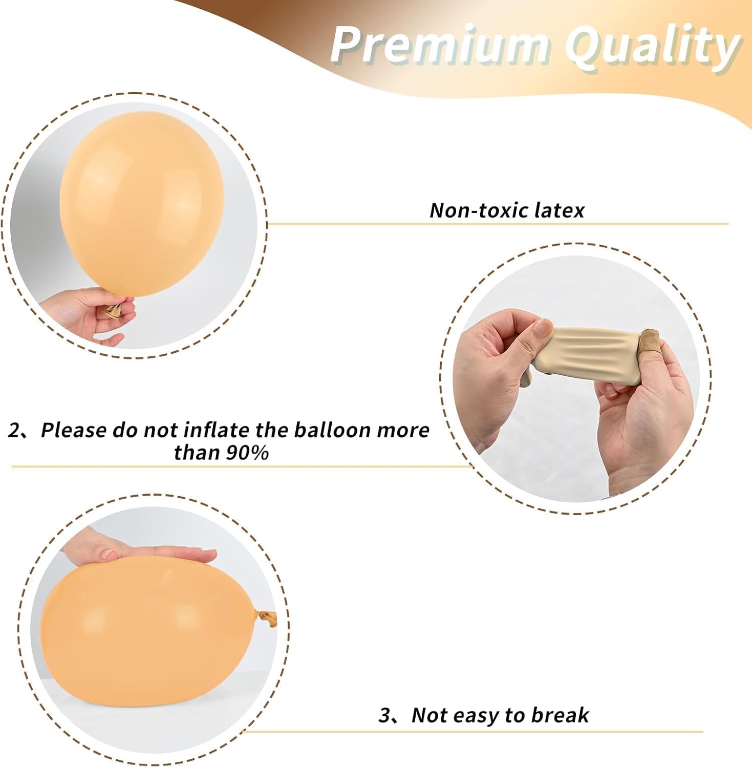 - 12 Inch blue and brown balloons: Package content includes 10 pcs blue balloons, 6 pcs beige balloons, 6 pcs sand white balloons,8 pcs brown balloons, a balloon ribbon.The color combination meets all your party imagination.