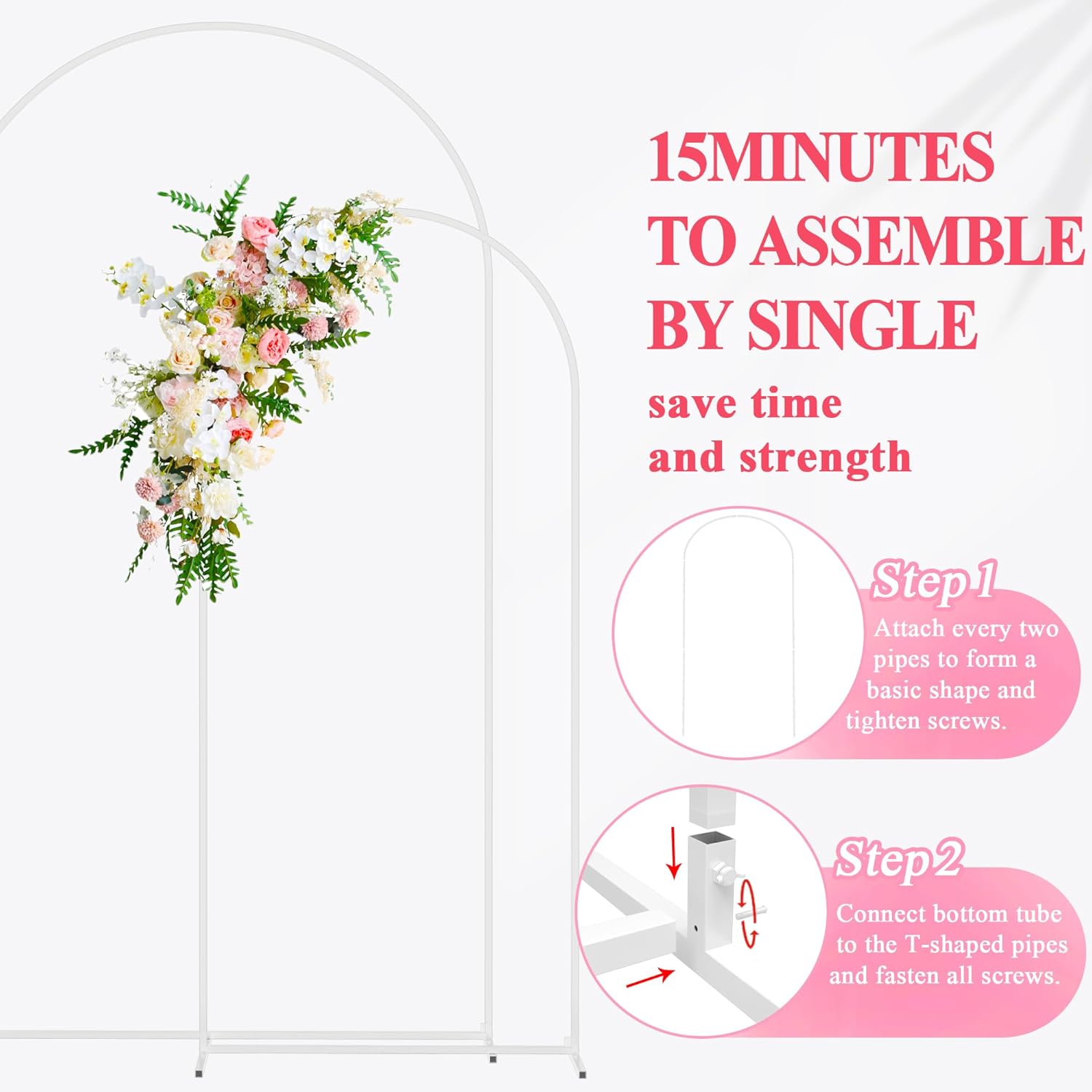 - 【2-Piece Metal Arch Stand Set】2-Pieces wedding arch backdrop stand set perfectly matched with two sizes for meeting your different needs. Flowers and tulles not included. Please feel free to contact us if you have any issues.