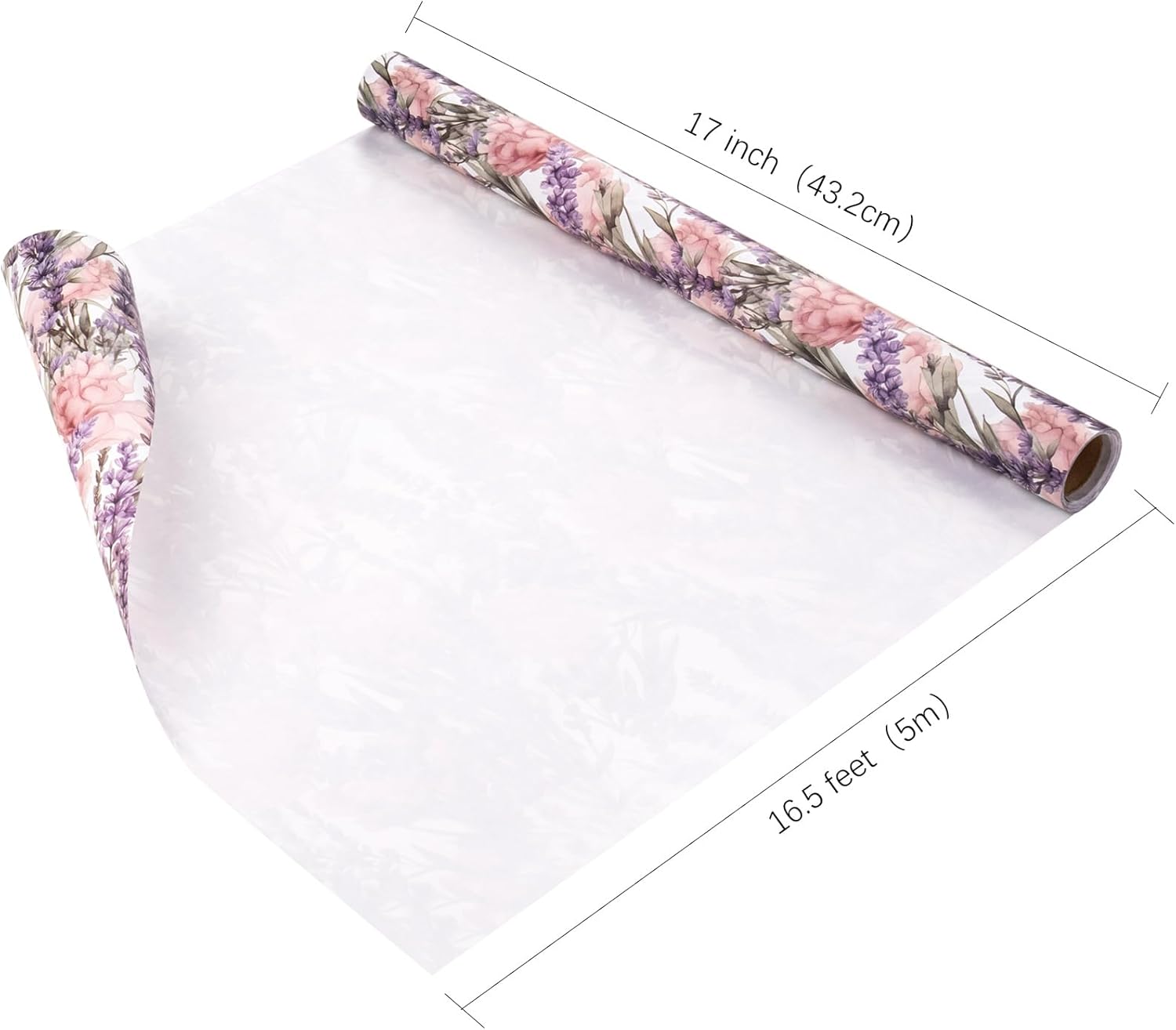 WRAPAHOLIC Kraft Floral Wrapping Paper - Mini Roll - 17 Inch x 16.5 Feet - Purple Lavender Flower Wrapping Paper for Wedding, Birthday, Bridal Shower, Tea Party, Drawer Liners, Home Closet Shelves