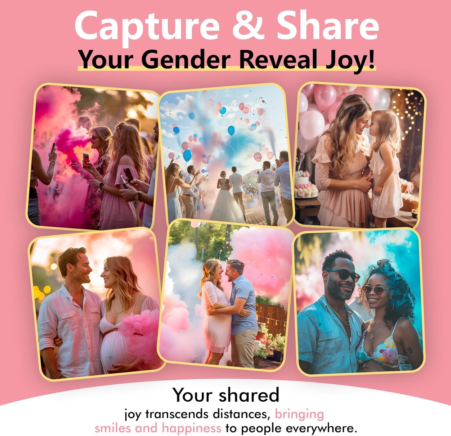 - SIMPLE TO USE AND ECO-FRIENDLY: Just aim your gender reveal smoke bombs skyward and twist the base to unleash a dazzling display of pink powder smoke and confetti, painting the sky with vibrant hues! And with eco-friendly, biodegradable confetti, cleanup is a breeze, leaving you to fully enjoy the excitement of your gender reveal festivities without any worries about the environment.
