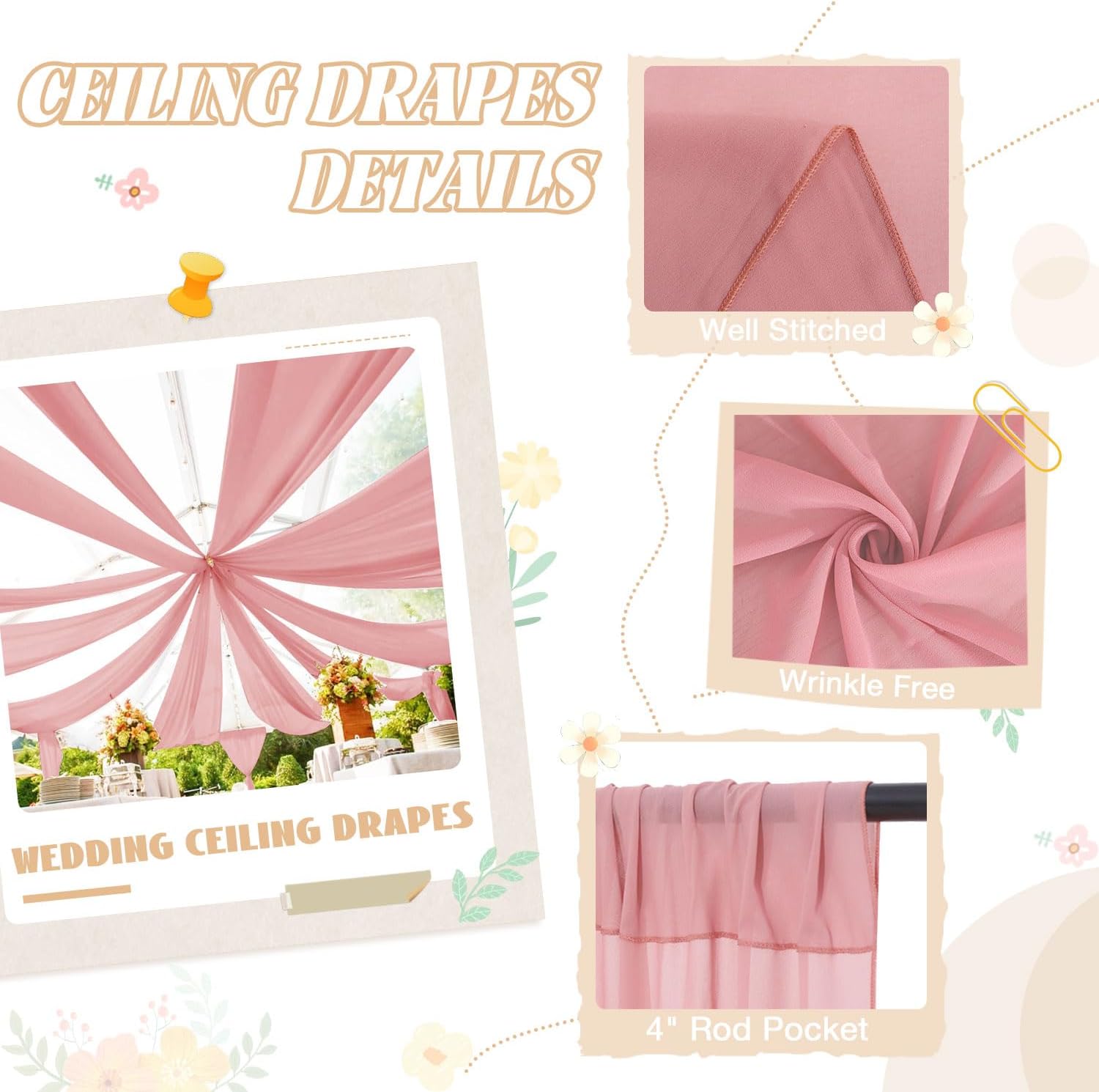 - ✿【Size of Ceiling Drapes】Package includes 4 panels dusty rose wedding ceiling drapes. Size of each panel is 5FT( 60 inches) width by 20FT( 240 inches) length. This ceiling drapes for weddings can help your party to create a warm and elegant scenes.