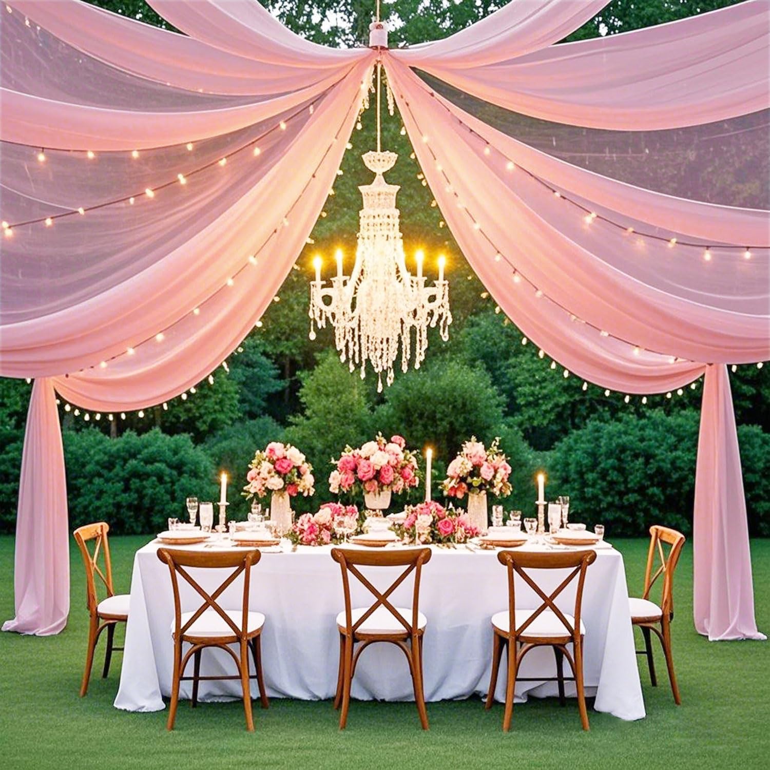 - ✿【Multi-Scenes Uses of Sheer Fabric for Draping】Wedding arch draping fabric is the best choice for wedding ceremony, weding arch, swag decor, home decor, ceiling decor, tent decor, engagement, stage, bridal shower, baby shower, anniversary, banquet, prom, birthday, celebration, graduation, party, reception, photography, photo booth, holiday and special events.