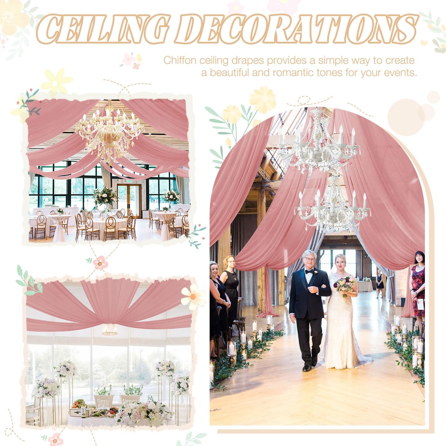 FUHSY 4 Panels Dusty Rose Ceiling Drapes for Wedding Ceiling Drapes 5x20 FT Sheer Ceiling Curtains Arch Draping Fabric Chiffon Drapery Fabric Rose Wedding Ceremony Decorations