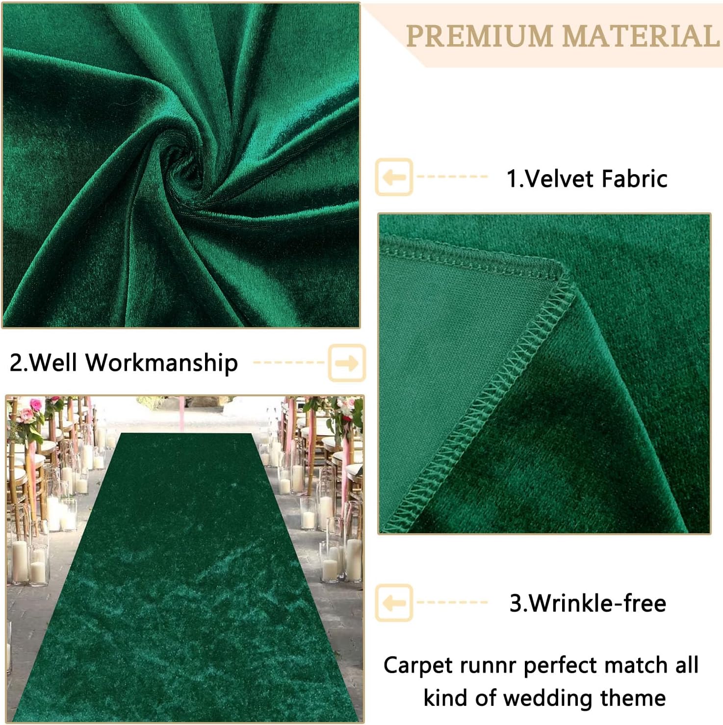 - ❤Size Guide - Carpet Runner for Parties: You will receive 4ft wide by 30ft long hunter green velvet aisle runner rug and 1 pack carpet tapes. Wedding aisle runway for ceremony add a perfect finishing touch to your ceremony venue, becoming a memorable keepsake to be cherish.