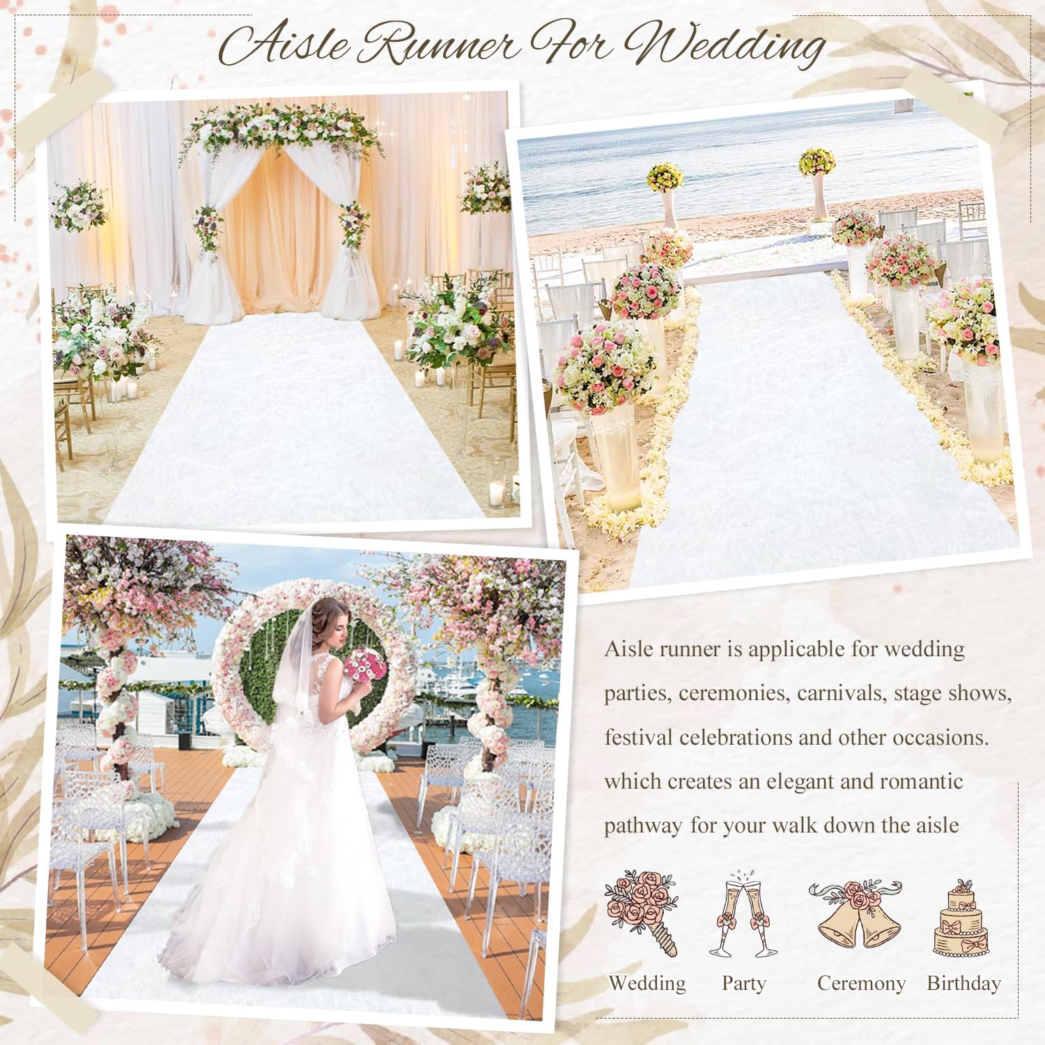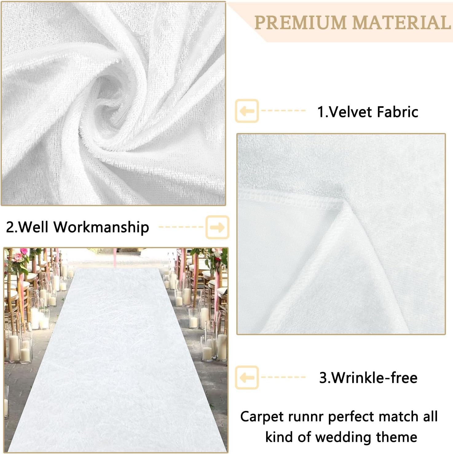 - ❤Size Guide - White Aisle Runner: You will receive 4ft wide by 30ft long white velvet aisle runner rug and 1 pack carpet tapes. Wedding aisle runway for ceremony add a perfect finishing touch to your ceremony venue, becoming a memorable keepsake to be cherish.