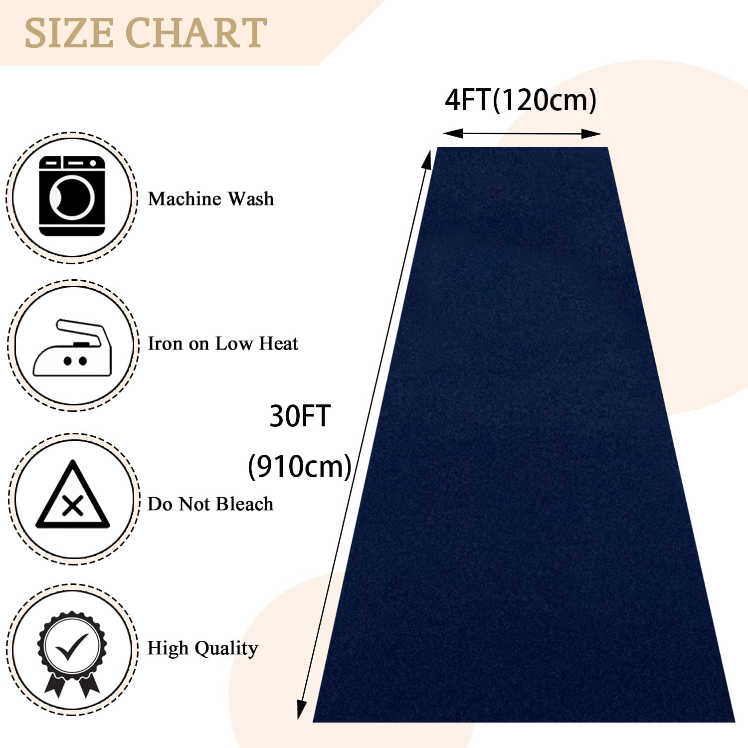 - ❤Size Guide - Navy Blue Aisle Runner: You will receive 4ft wide by 30ft long navy blue velvet aisle runner rug and 1 pack carpet tapes. Wedding aisle runway for ceremony add a perfect finishing touch to your ceremony venue, becoming a memorable keepsake to be cherish.