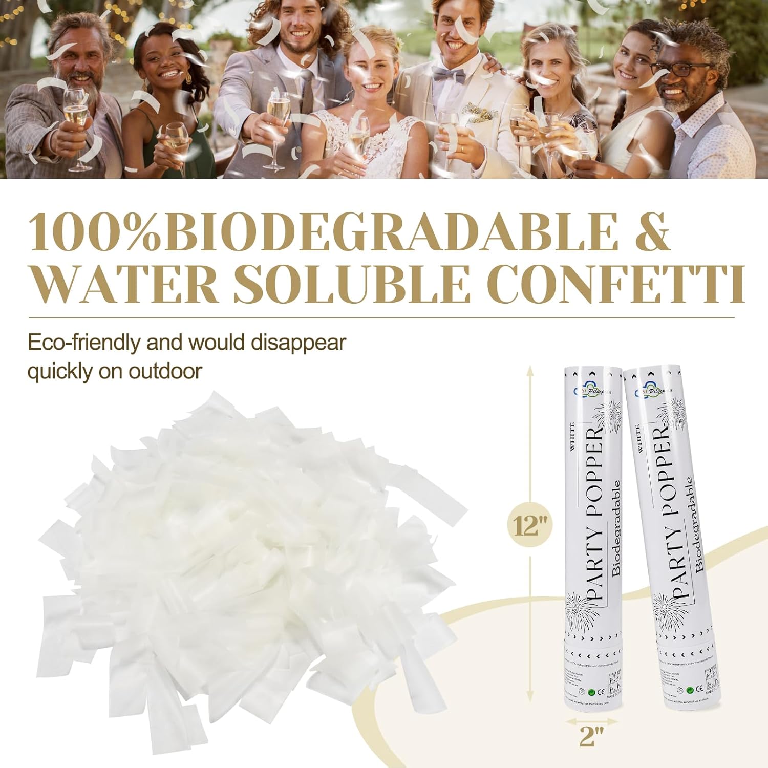 White Confetti Poppers,Rice Paper For Wedding,Biodegradable Cannon,6Pack Biodegradable Confetti Party Shooters Air Power, Party For Lawns Wedding,Birthday,Outdoor Celebrations