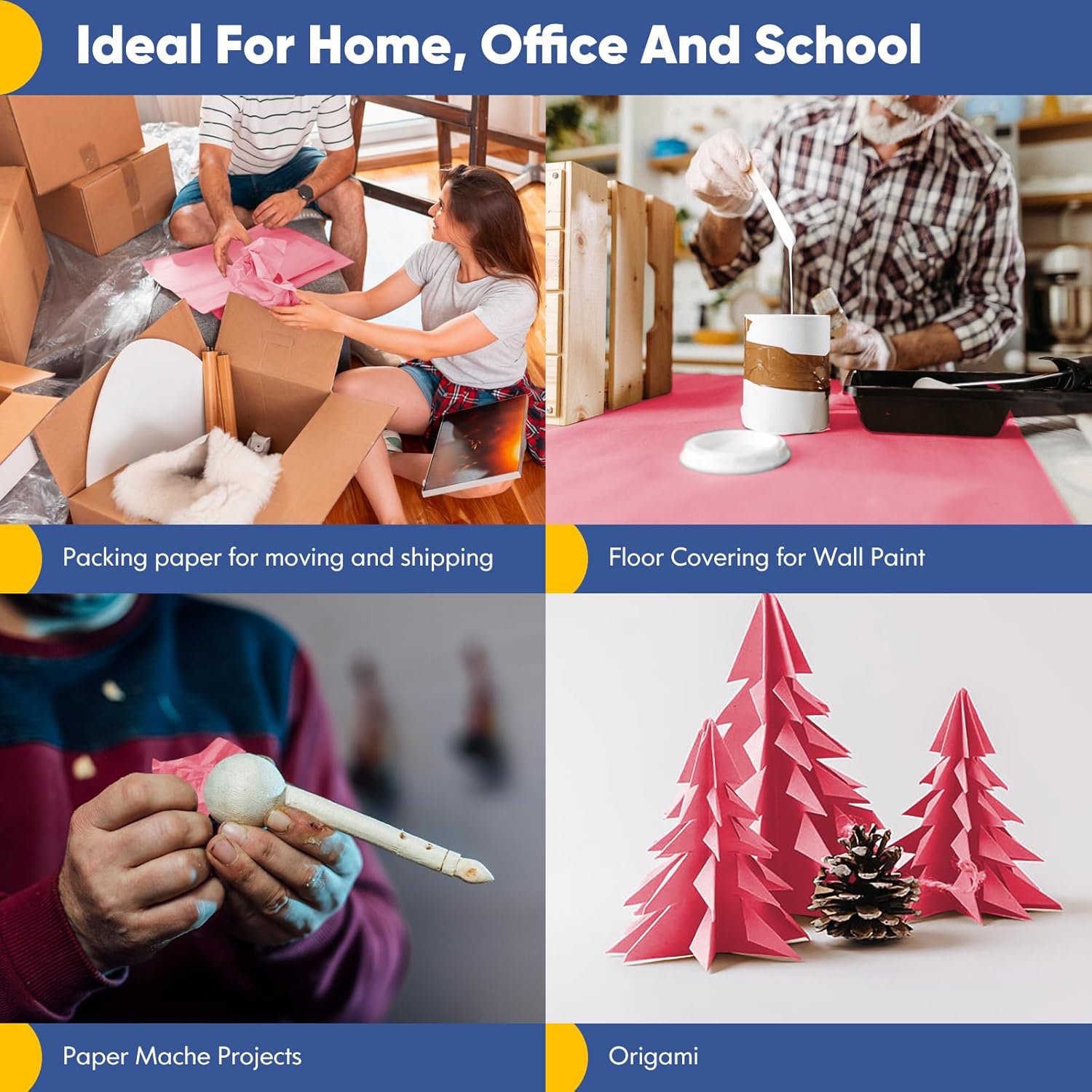- Ideal Wrapping Paper for home, school and office supplies. The must have paper roll item in your packing, boxing, moving, floor covering, wall art, table runner, shipping, sketching, coloring, drawing and painting supplies. Use it for wrapping Christmas, birthday, mother day, valentines day gifts or wedding gifts. Great as wrapping paper, craft paper, poster paper, packing paper for moving, kraft paper, brown paper roll, flower wrapping paper, bouquet wrapping paper, bulletin board paper.
