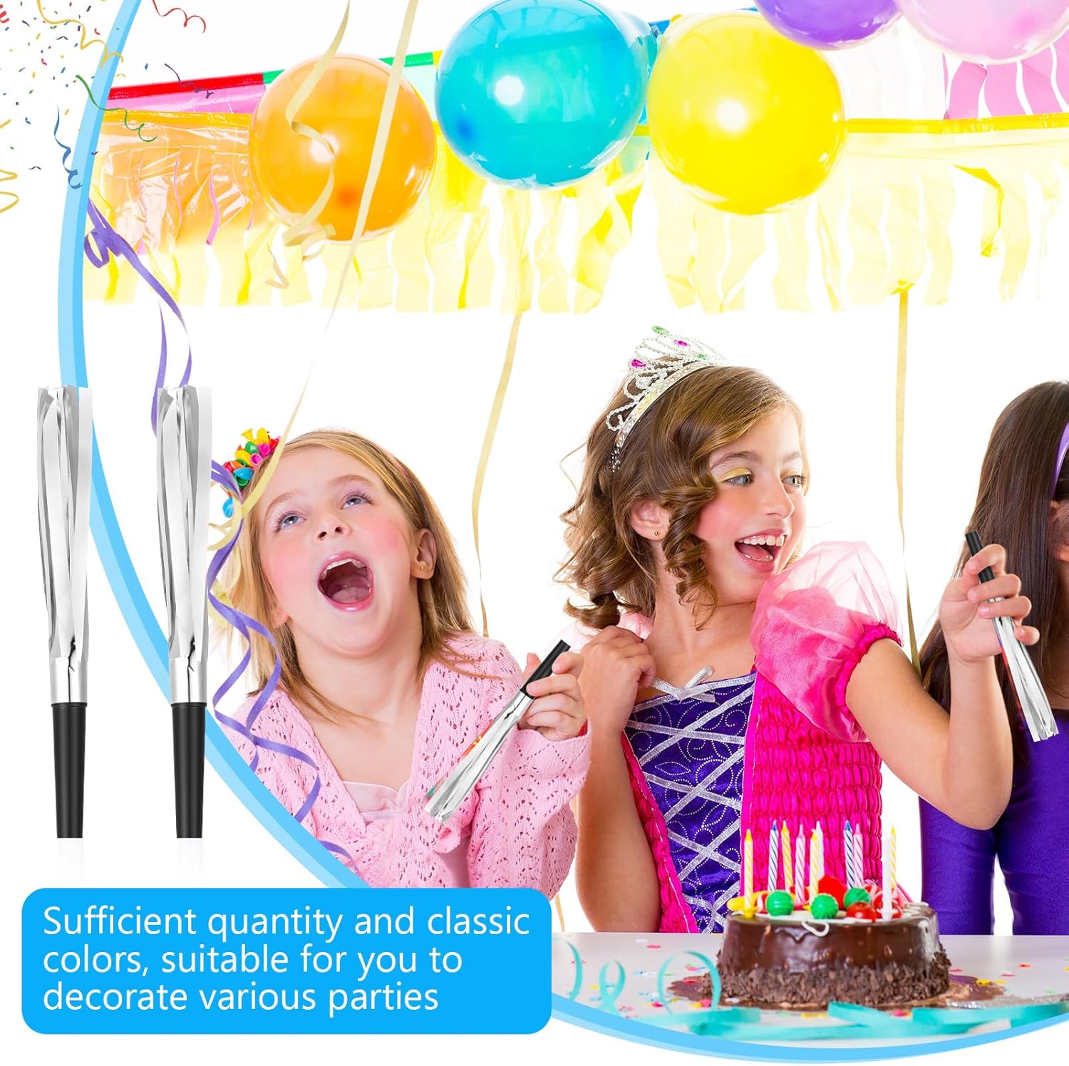 24 Pcs Noise Makers Glitter Metallic Fringed Noise Makers Horns for Baby Shower, Kids Birthday, New Year Party Favor - Silver