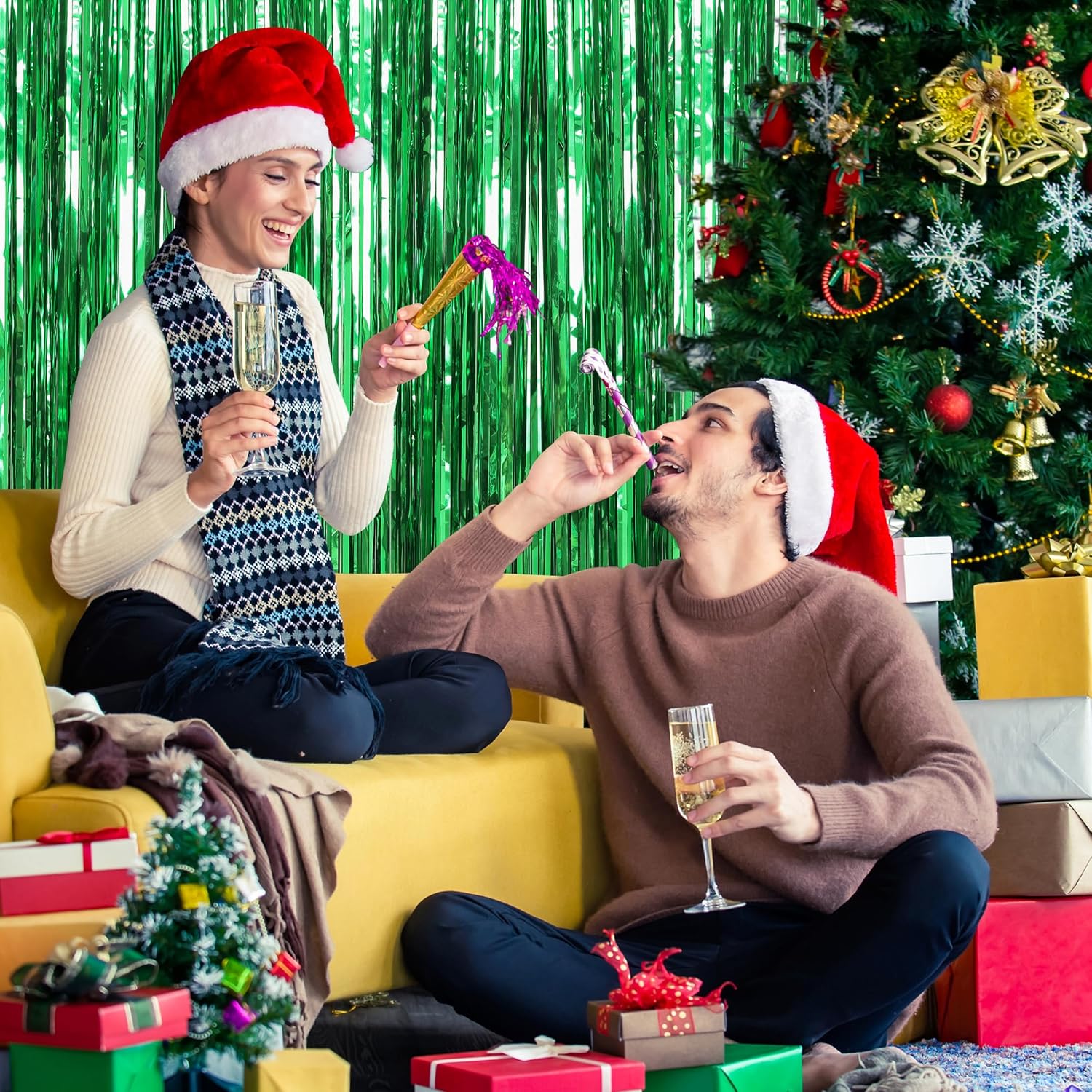 2 Pack Green Foil Fringe Curtains Streamers Party Decorations 3.3 x 8.2 ft, Tinsel Curtain Fringe Backdrop for Parties, Door Fringe Birthday Streamers, Photo Booth Backdrops, Party Decor