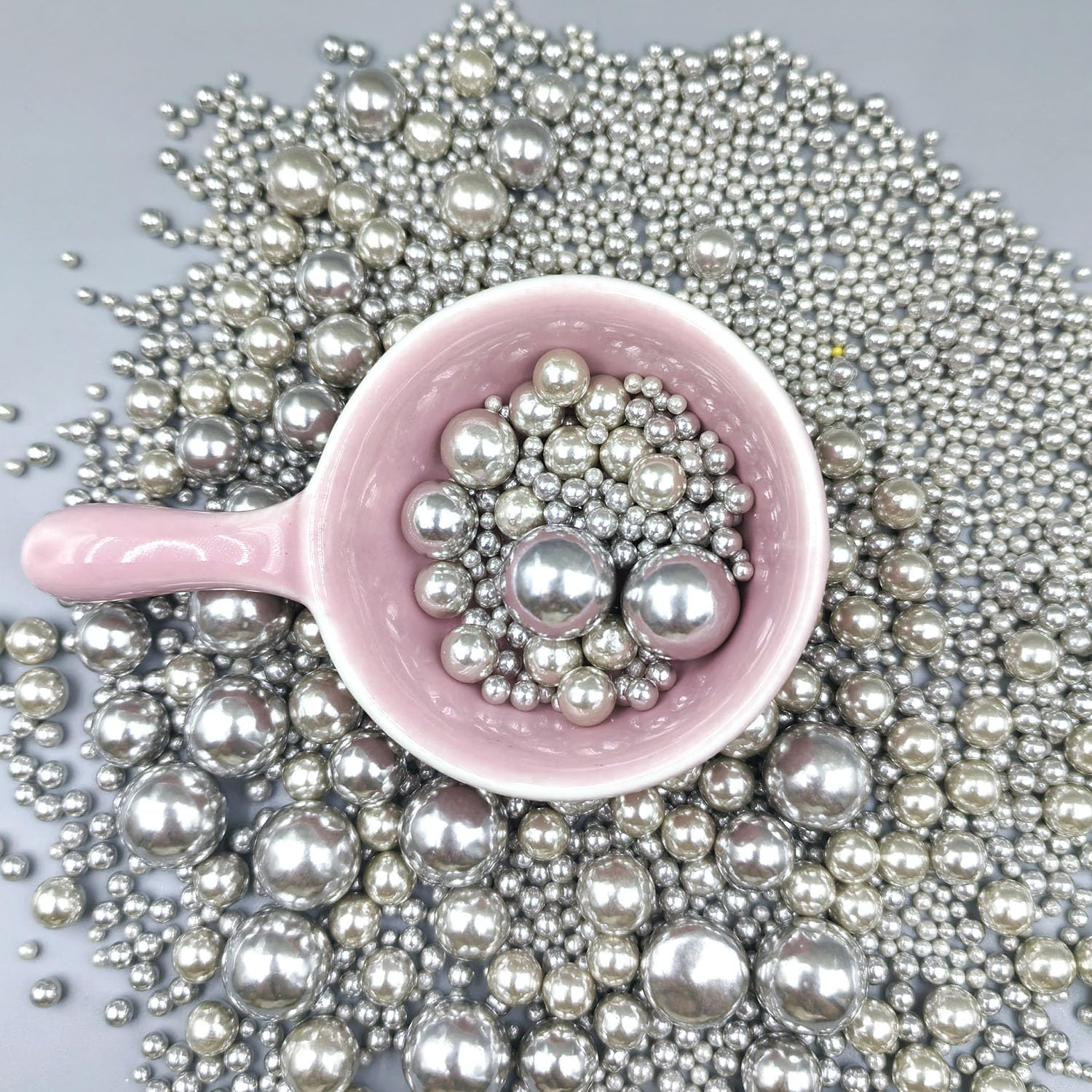 Edible Pearl Sugar Sprinkles Silver Candy Mixing Size Baking Edible Cake Decorations Cupcake Toppers Cookie Decorating Celebrations Wedding Valentines Easter Halloween Christmas Supplies 120g/ 4.23oz