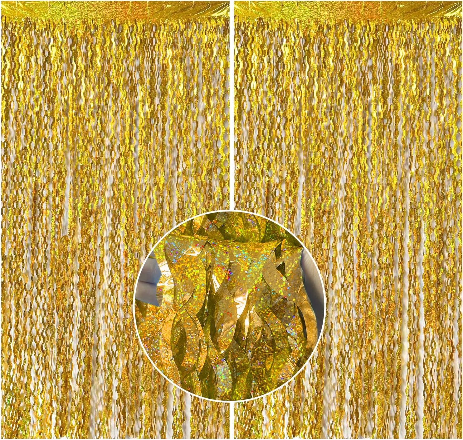 2 Pack Gold Fringe Curtain Backdrop Tinsel Streamers Birthday Party Decorations Photo Booth Backdrop Halloween New Year Graduation Theme Party Decorations