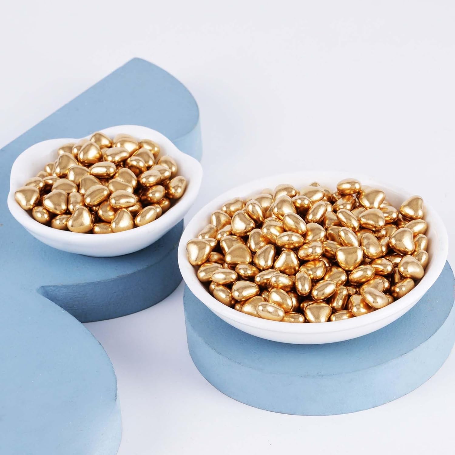 Kasvan Gold Heart Shapes Sprinkles - Edible Candy Pearls 100g/3.58 Oz, Mix Size, Baking Cake Decorations, Ice Cream Toppings and Cookie Decorating, Wedding Party Chirstmas Supplies (Gold)