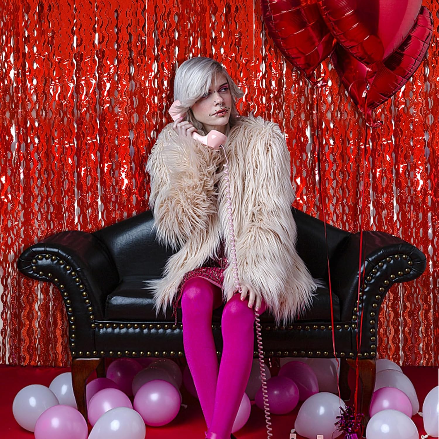 - Valentines Day Backdrop:10 Pack, each curtains size is 3.28 ft x 6.56 ft, enough length foil fringe backdrops are perfect for the door, wall and table,feel free to cut to any length you want.
