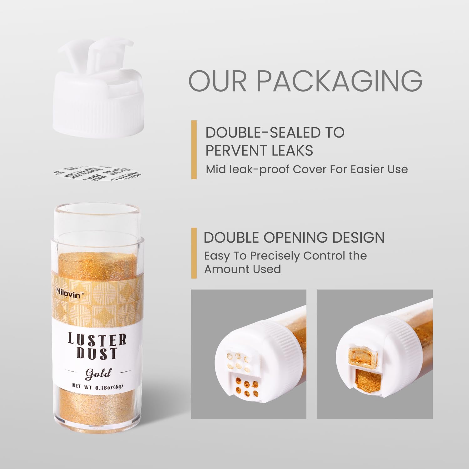 - Easy to Use: You just need to tap the bottle lightly, then sprinkle the edible luster dust on top of your food or drink. (The powder will be affected during transportation, It may seem smaller, but the weight of the product is right)