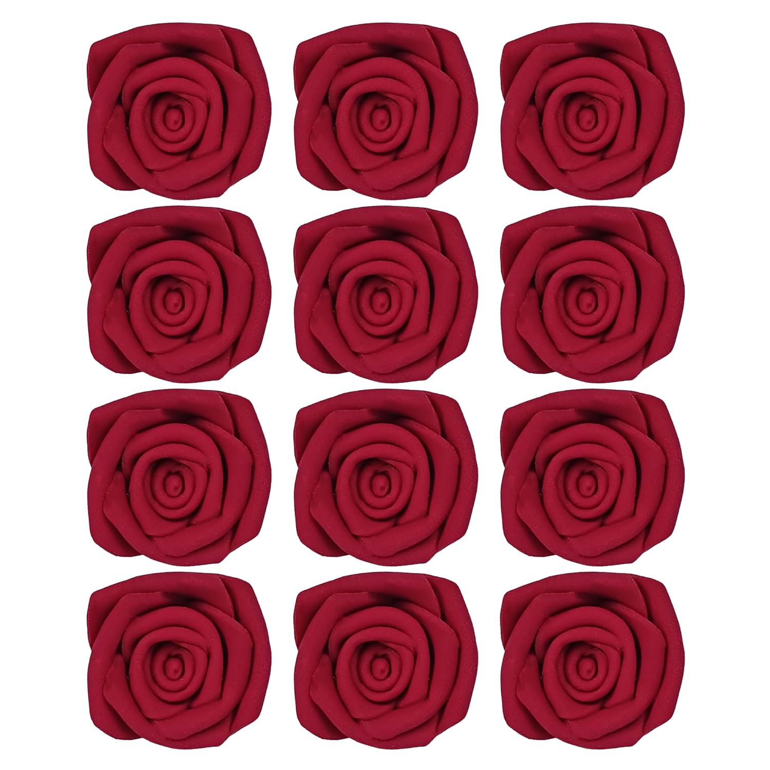 Confect Edible Deep Burgundy Rose Toppers – Edible Roses for Cake & Cupcake Decorations, Perfect for Weddings & Special Occasions- Vegan, Gluten-Free, Dairy-Free, Palm Oil-Free - Pack of 12