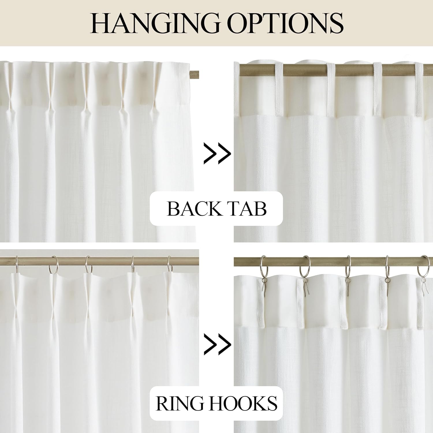 - Pinch Pleats Design:Each white curtain panel with 10 pinch pleats generates modern and luxury feel.Hanging these pinch pleat curtains to elevate your windows and increase the aesthetic value to any spaces,bedroom,living room,nursery,office,etc.