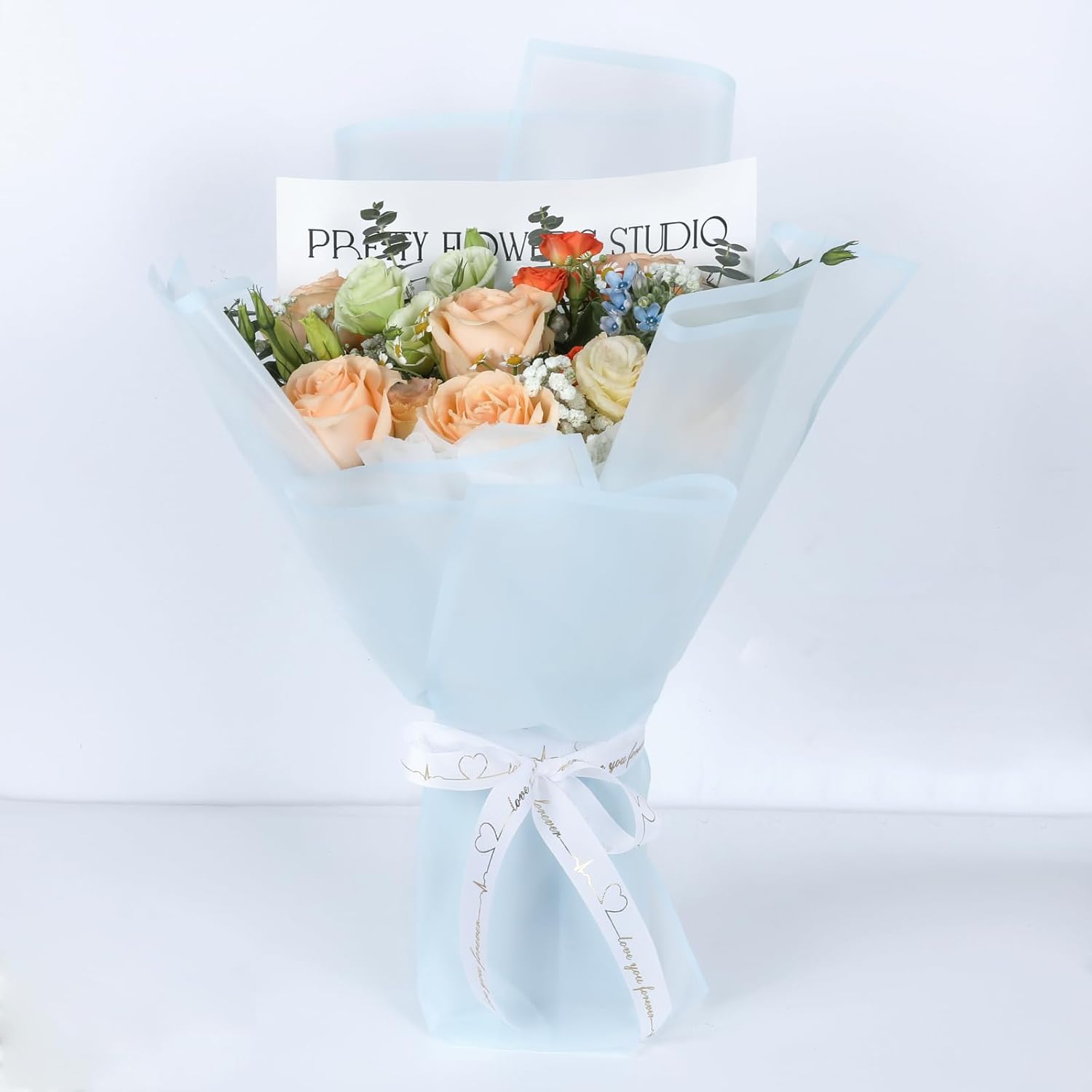 NESCCI 20 Sheet Flower Wrapping Paper - Waterproof Floral Bouquet Wrapping Paper, Florist Supplies Packaging Paper for Wedding Birthday Gift DIY (Translucent Light Blue)