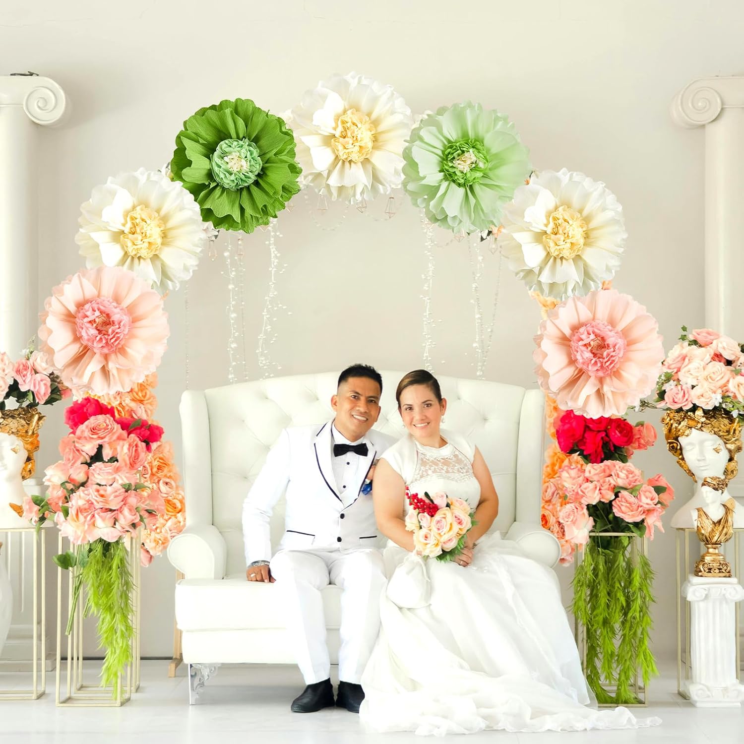 - Fresh Large Paper Flowers Decoration: Fresh and light, spring is in the air, including soft light pink, fresh mint green, sage green and light beige, add a burst of color and cheer to any space. These 4 PCS 20-inch Giant paper flowers are designed for versatile use;Can be hung for a festive look, or adhered to a wall or outdoors for decoration!