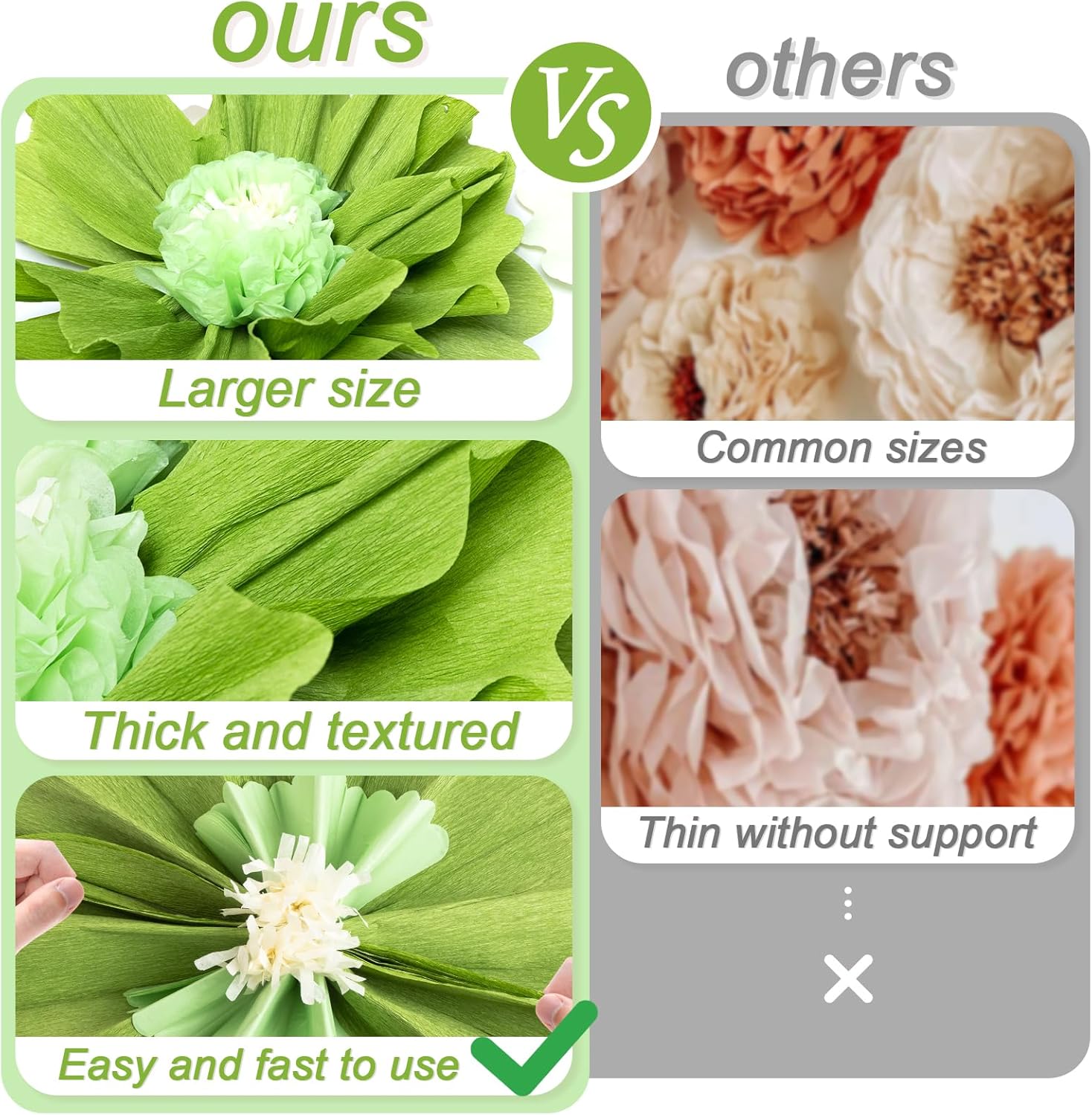 - Multiple Occasions: Transform any space with these versatile paper flowers for crafts. Ideal for creating a soft, inviting ambiance at baby showers, weddings, and spring classroom decorations. They’re also perfect for birthday parties, garden decorations, bridal shower decor, wedding, or tea party decorations. You can even try to use these as large paper flower decorations for walls to elevate your space.