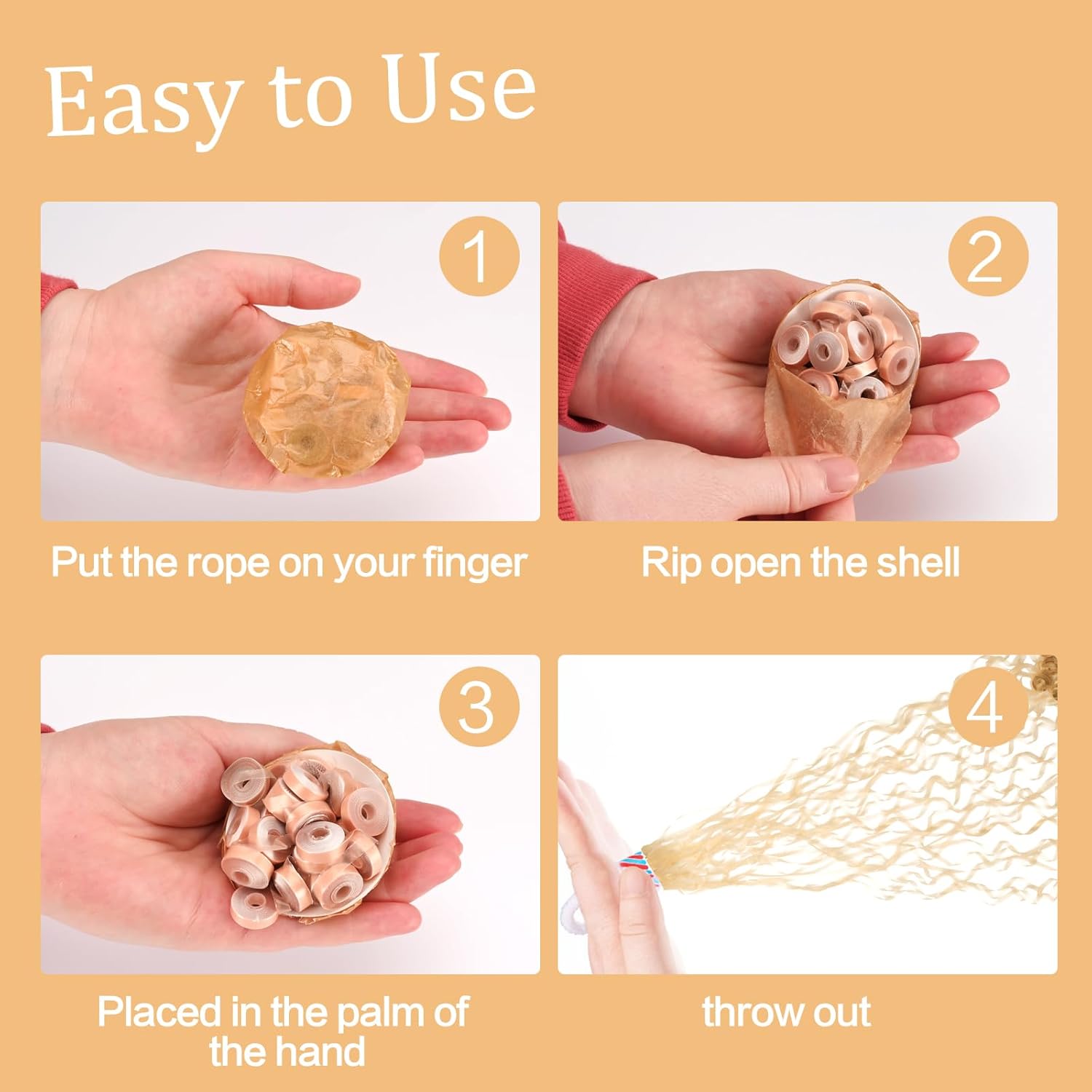 - How to use - Put the looped handle above the ribbons on your finger, then tear the wrapping paper at the bottom and throw them at a forward and upward angle, the more ribbons you throw at the same time the better the result. You can achieve a shocking effect and an instant lift in atmosphere