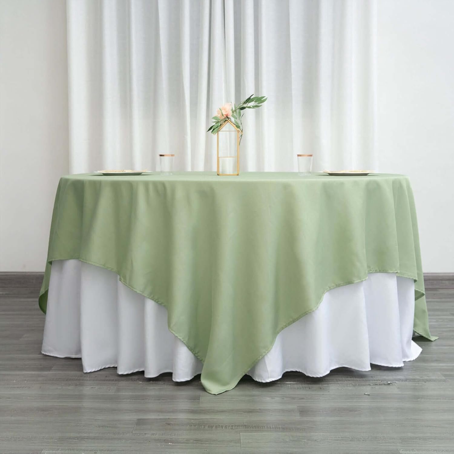 - Quantity: 1 Tablecloth Material: 100% Polyester Color: Sage Green Size: 90" x 90" Square Thickness: 200 GSM 1 piece, seamless design Stain & Wrinkle Resistant, Machine Washable Hemmed edges for an exquisite look.