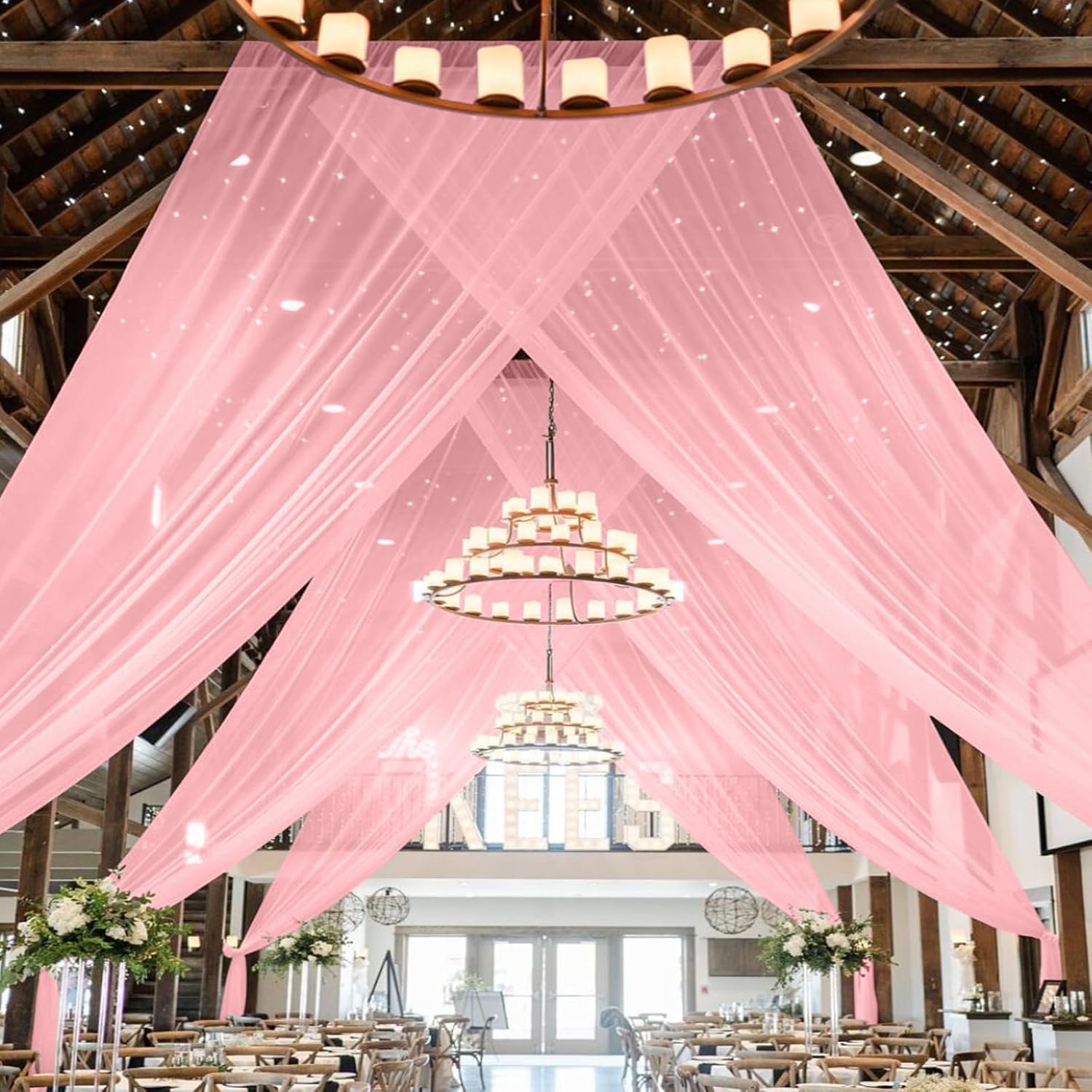 - đ·ăWedding Ceiling Curtain Widely UsedăWedding drapery ceiling can match well with many decorations, perfect for weddings ceiling, stages, receptions, parties, bridal and baby showers, birthdays, engagement, candy buffets, dessert tables, photography, ceremony and more. The sheer curtain can not only decorate the ceiling but also your arches, backdrop, curtains, chandeliers and so on.