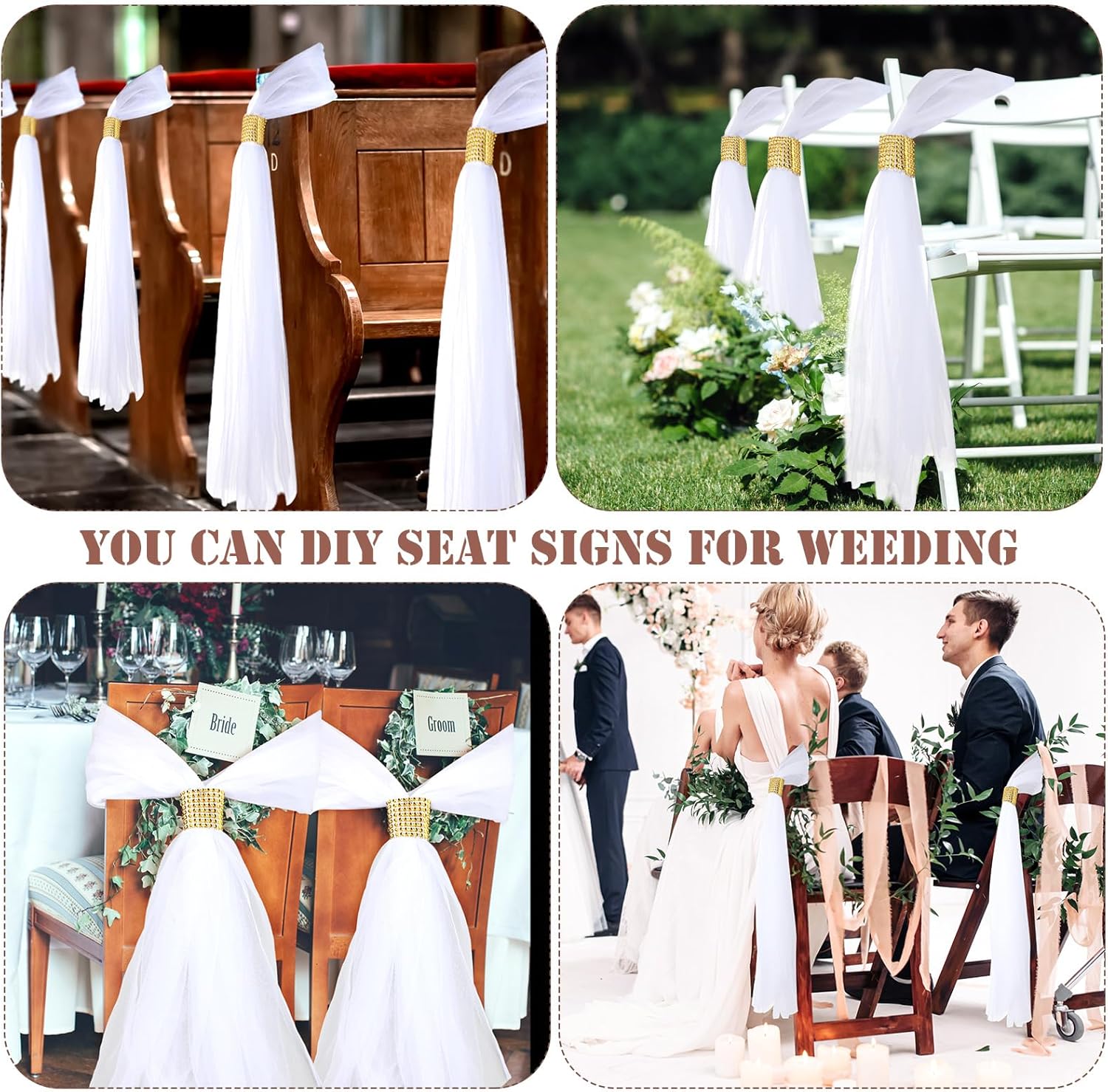 - Wedding Pew Bows Tulle Set: you will receive 24 pieces church pew bows tulle decorations; Each prepared tulle is decorated with a gold shiny rhinestone wrap, enough quantity and exquisite style to meet your wedding chair decoration needs