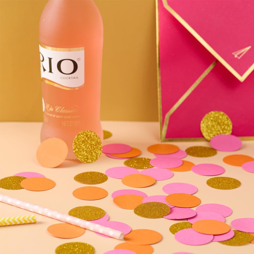 - Confetti Hot Pink Orange and Gold 200 counts dots confetti, each dots 1.2'' in diameter,high quality craft paper confetti