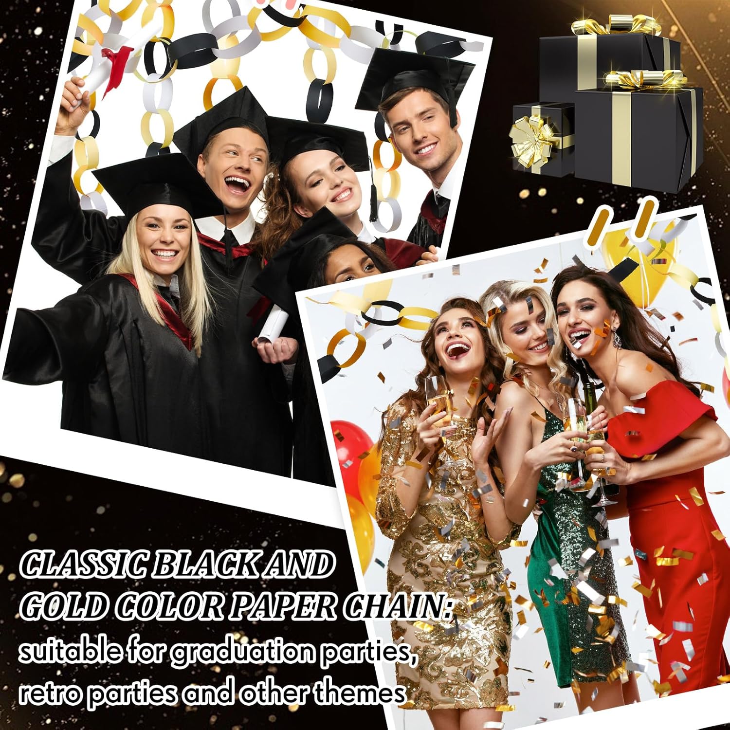 Lincia 600 Sheet Halloween Paper Chain Garland, Construction DIY Crafts Chain Strip for Fall Thanksgiving Party Decor, 1x8 Inch with Double Sided Tape (Black Gold)