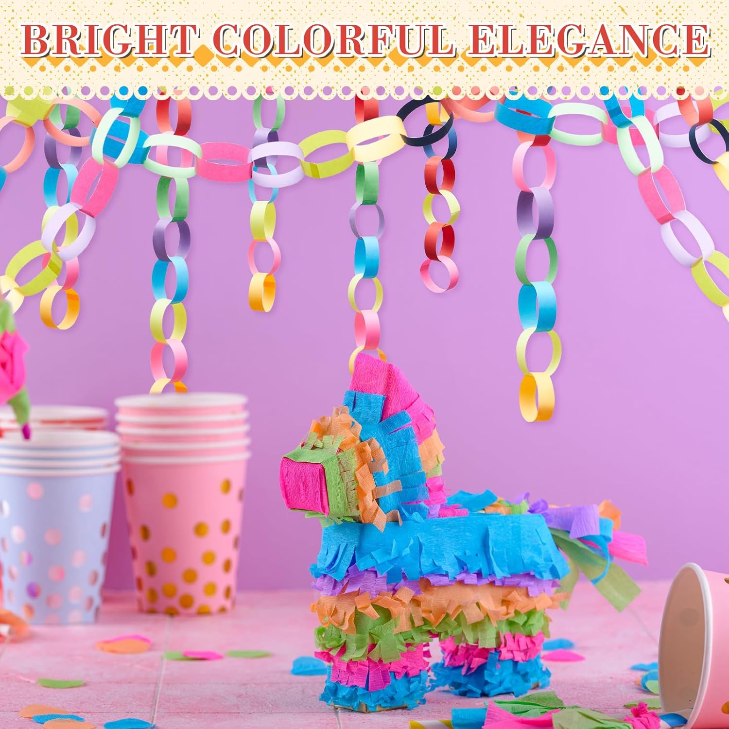 - Abundantly Colorful Paper Strips: the color palette is bountiful with our 600 sheets paper chain strips, equipped with 2 rolls of double sided tapes; The abundant quantity means you can create a paper chain that can stretch up to 28 feet in total length; The multitude of colors available broadens your design spectrum, bringing out ingenuity and creativity